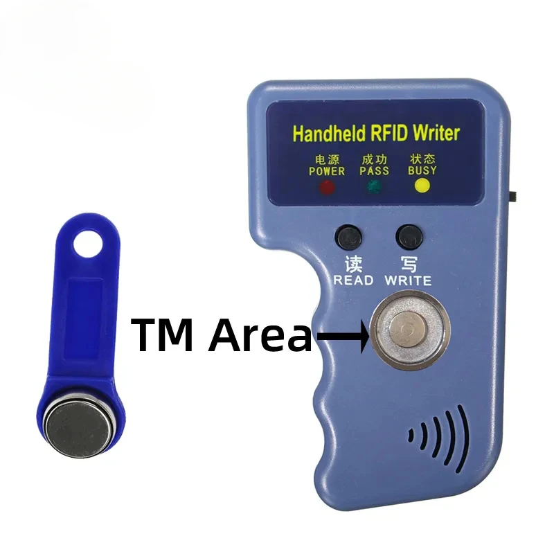 읽기: 유도 성 근접 카드 (TM1990A 또는 내부 정보 RW1990 있음) 를 TM 영역에 놓고 읽기 키 (왼쪽) 를 누릅니다. 성공을 위해 녹색 표시기에 의해 버저가 울립니다. 전원 표시등이 깜박이면 카드 판독기가 고장났습니다. 그 이유는 키 칩이 지원되는 유형 키 칩이 아니기 때문일 수 있습니다.