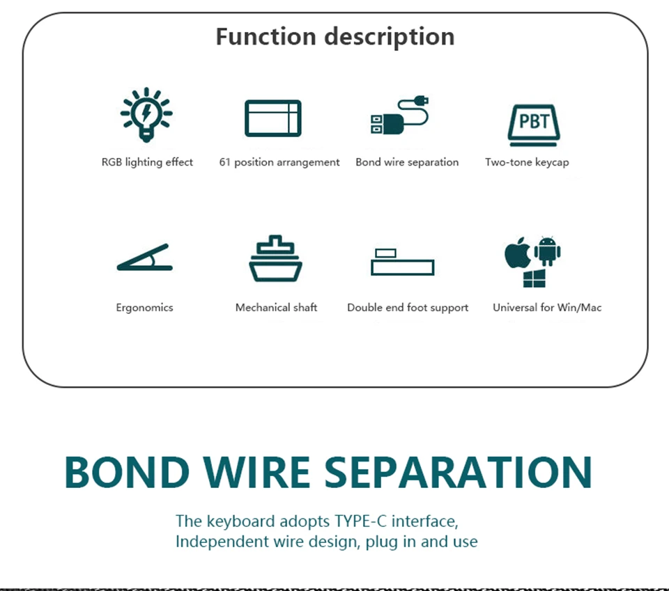 제품 이름: 61 키 블루 스위치 기계식 키보드