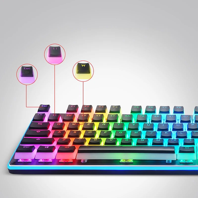 2. 광 전송 디자인: 이중 레이어 디자인은 광 투과율을 향상시키고 백라이트 효과를 향상시킵니다. 어두운 환경에서 키보드를 더 매력적으로 만드십시오.