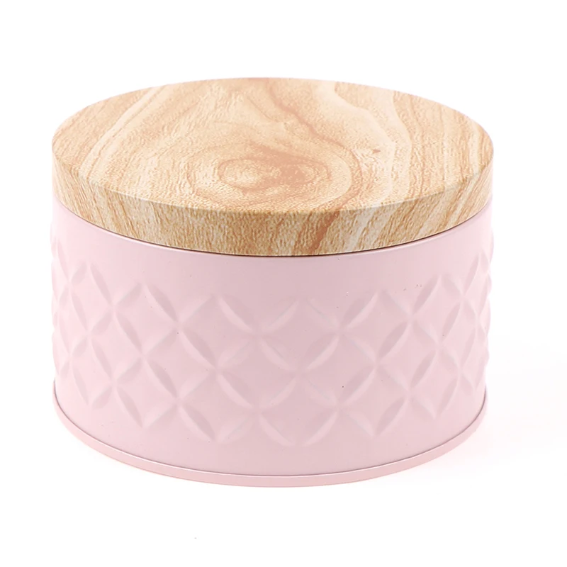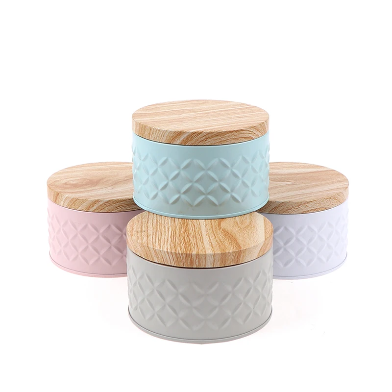 우드 그레인 뚜껑 사탕 보관 상자와 라운드 빈 철 상자 Diy 촛불 항아리 만들기