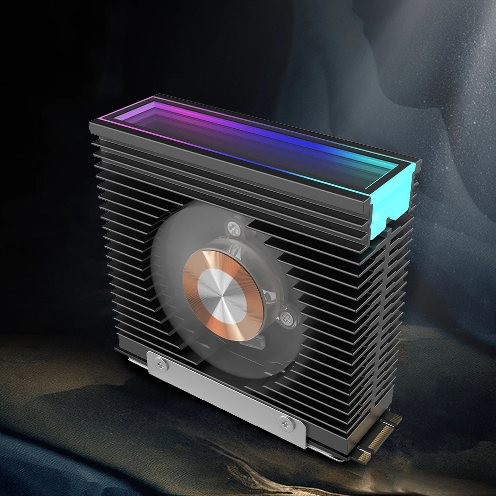 2.PWM 지능형 온도 제어:4 핀 인터페이스 팬은 마더보드의 M.2 _ FAN 온도 제어 인터페이스에 대한 연결을 지원합니다. SSD 온도에 따라 팬 속도를 지능적으로 조정하여 에너지 절약 및 소음 감소 이점을 제공합니다. CPU 온도가 상승하면 팬 속도가 증가하여 SSD가 빠르게 냉각됩니다. 반대로 CPU 온도가 낮아지면 에너지 절약 및 소음 감소를 위해 팬 속도가 감소합니다. 동적 속도 조정은 소음 수준이 26dBA 인 1500-4000RPM 사이에서 가능합니다.