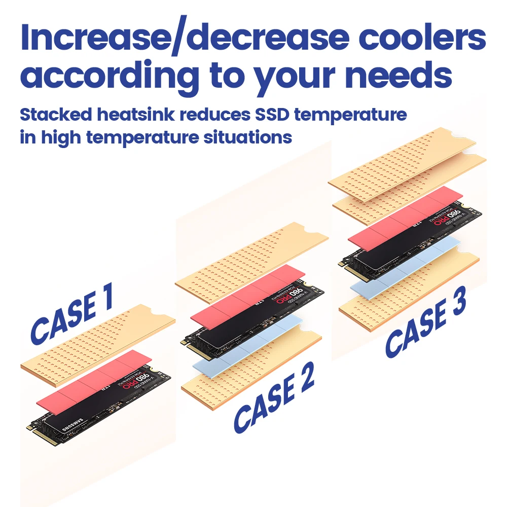 특수한 상황에서 SSD 온도를 낮추기 위해 여러 개의 히트 싱크를 쌓을 수 있습니다