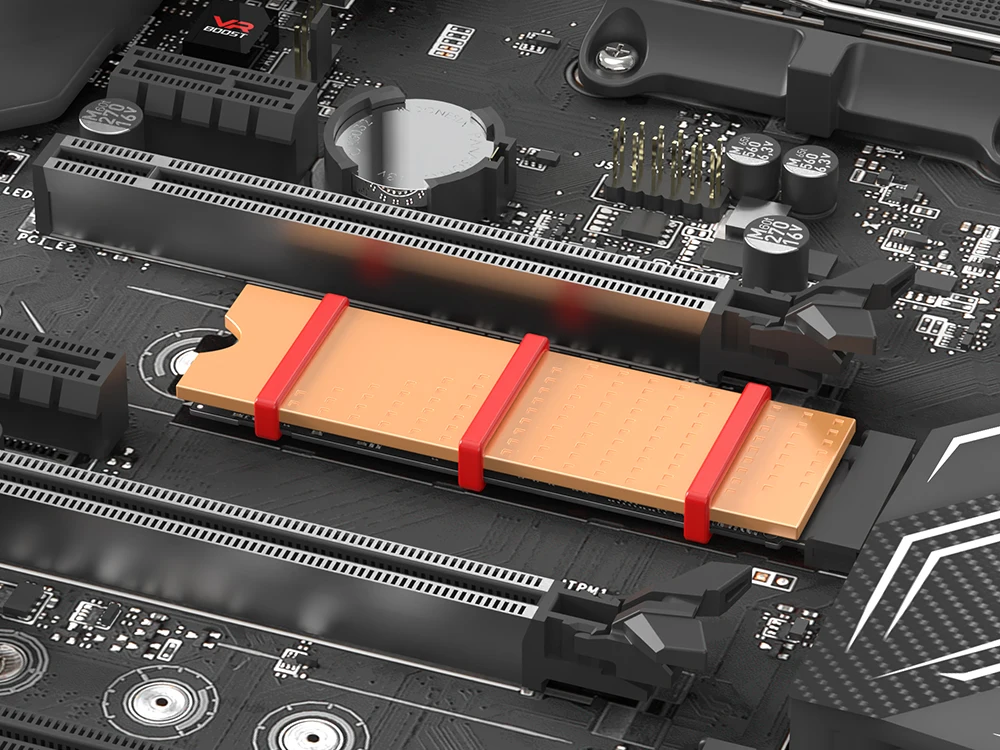 방열판과 SSD 사이에 실리콘 냉각 패드를 두어 SSD 손상을 방지하고 SSD 입자를 보호하여 SSD 수명을 효과적으로 연장하십시오.