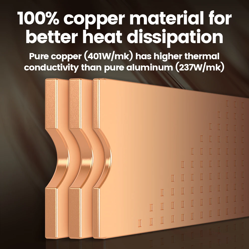 ? 100% 구리 재료:순수한 구리로 제작 된이 방열판은 우수한 열 전도성과 내구성을 제공합니다.