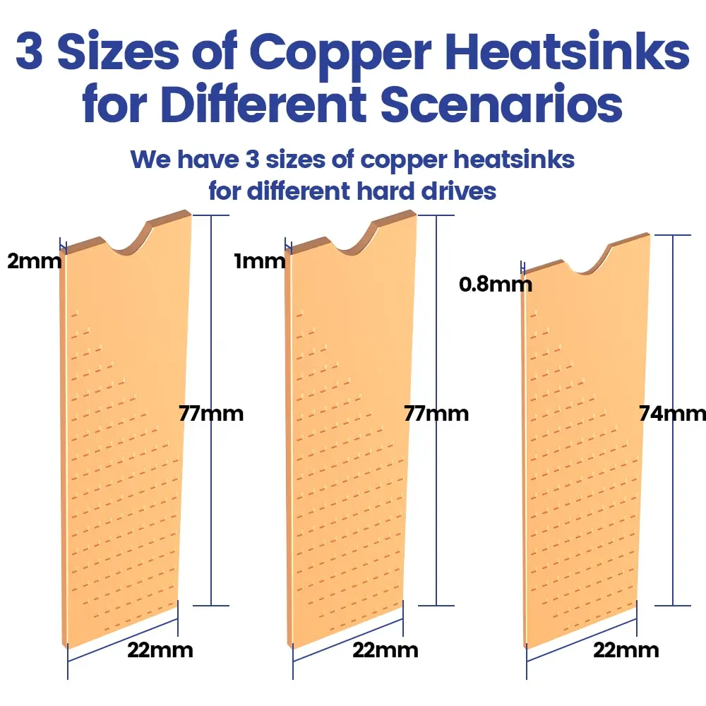 우리는 다른 하드 드라이브에 3 크기의 구리 히트 싱크가 있습니다.