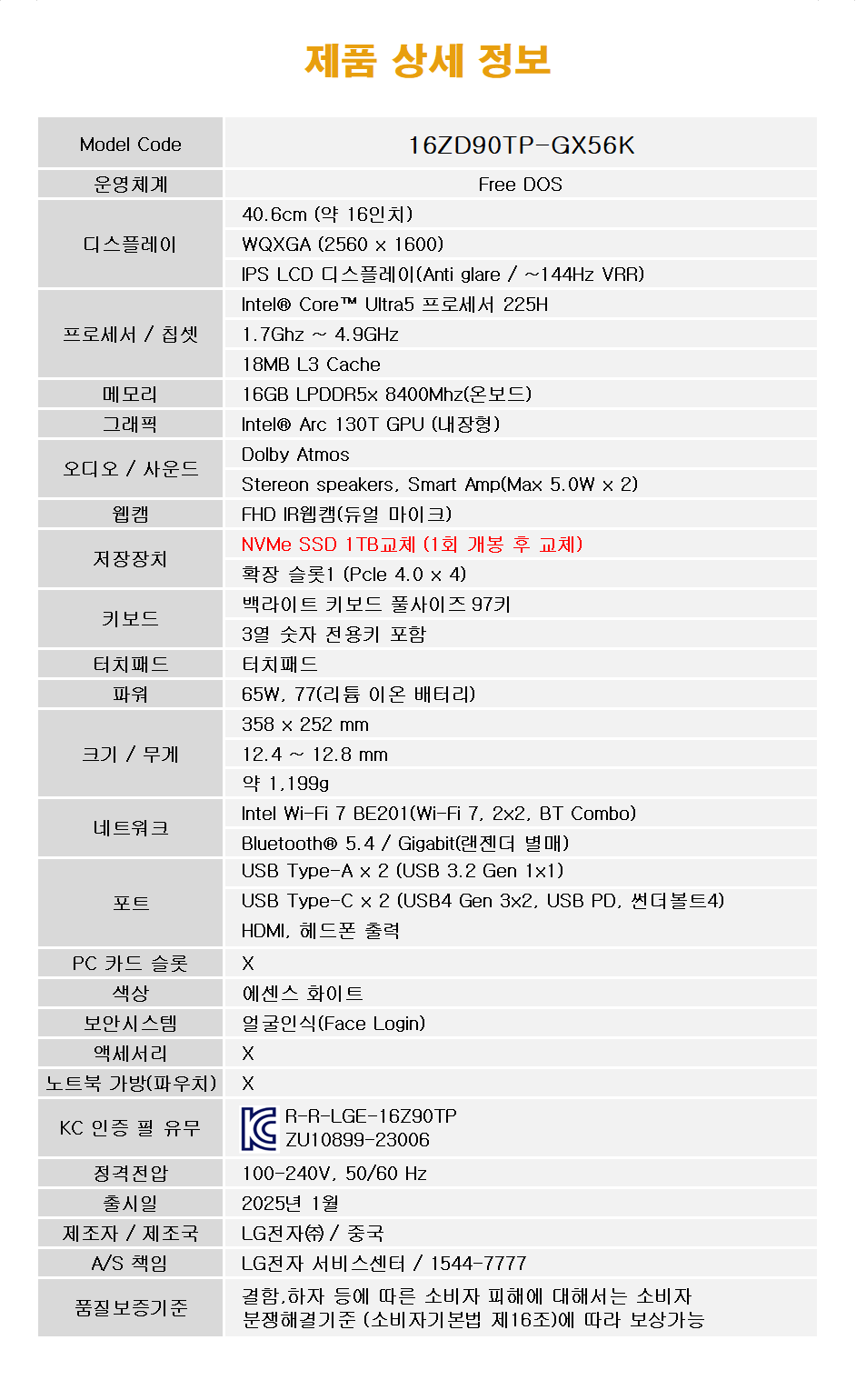 LG전자 2025 그램 프로16 16ZD90TP-GX56K SSD 1TB교체+사은품 +무선마우스+마우스패드 증정 DK