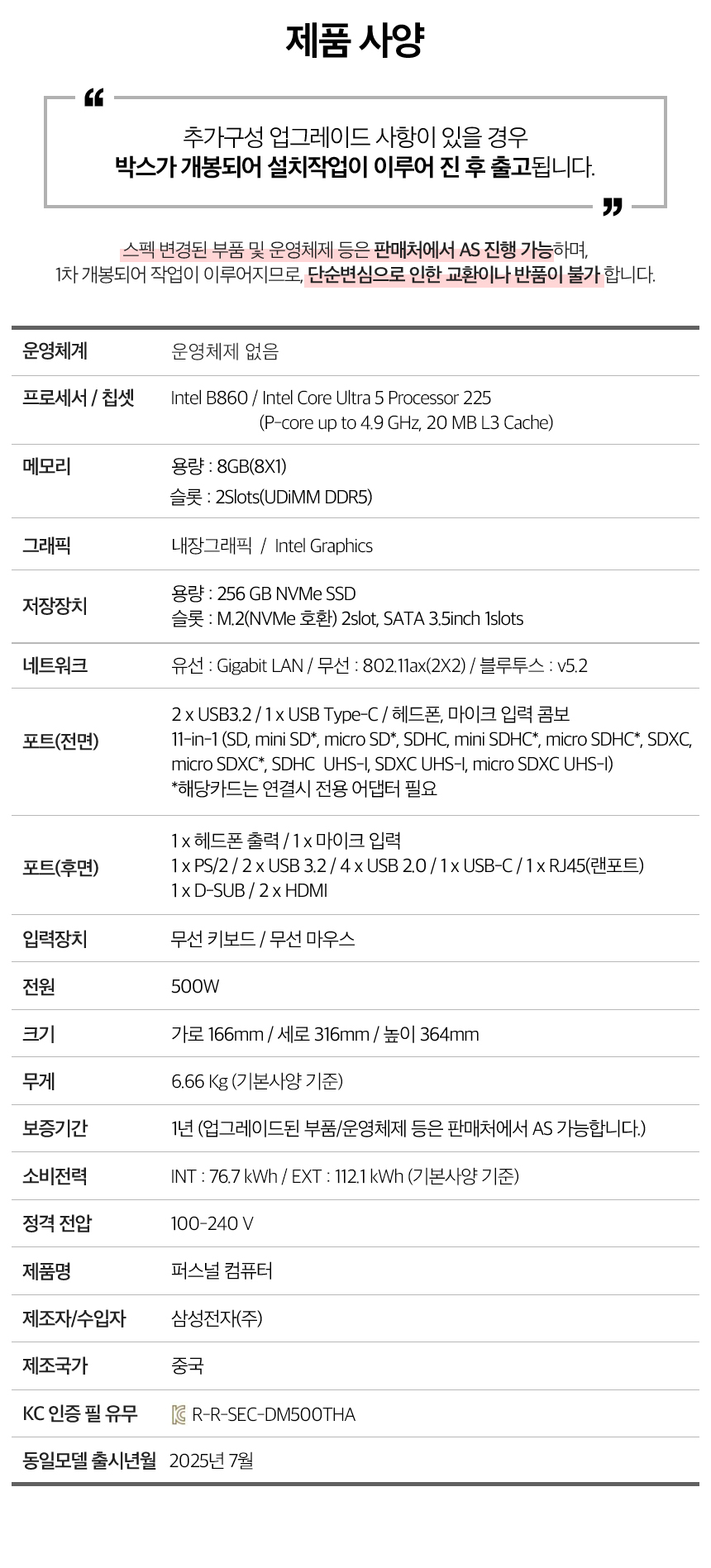 삼성 데스크탑5 DM500THZ-U5AB Win11Pro / 16GB 램 / NVMe SSD 1TB / 윈도우11pro//
