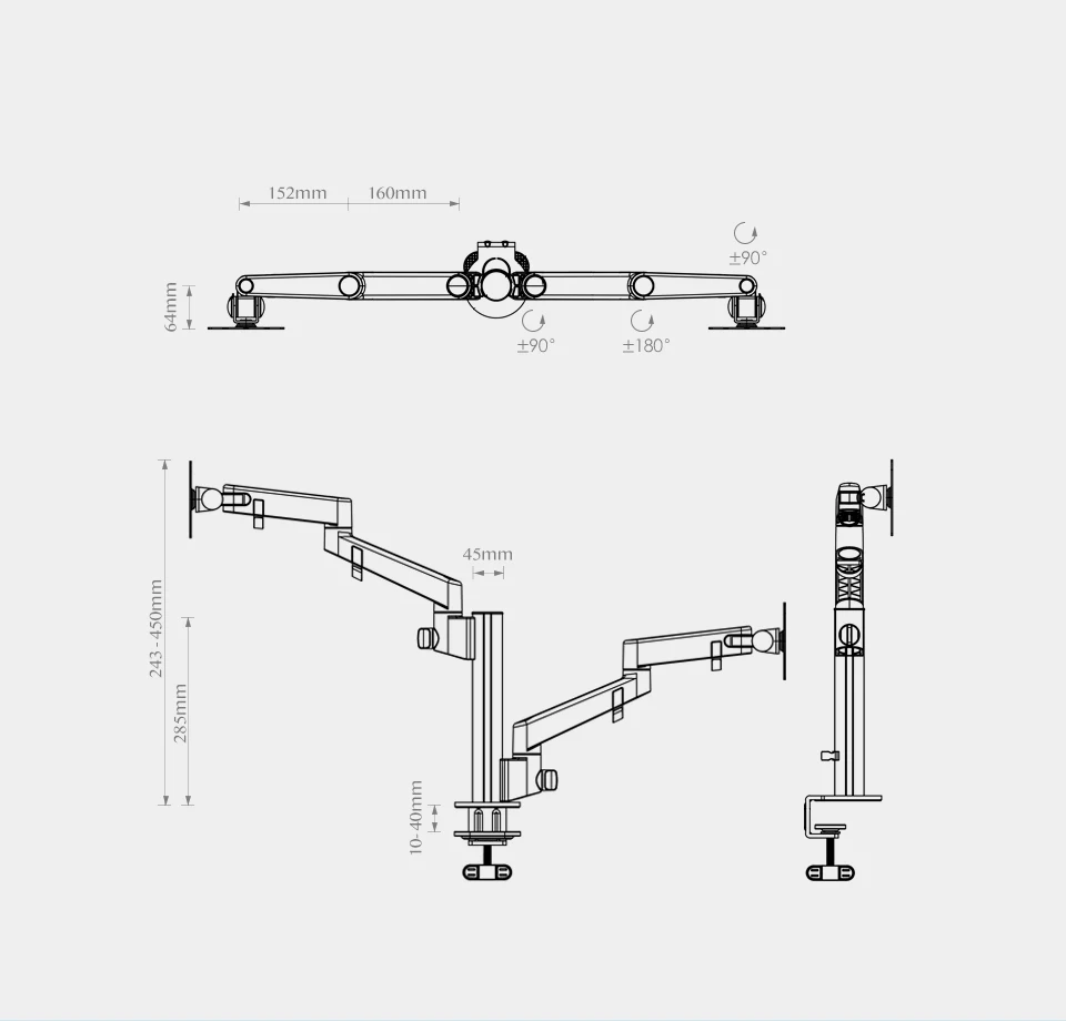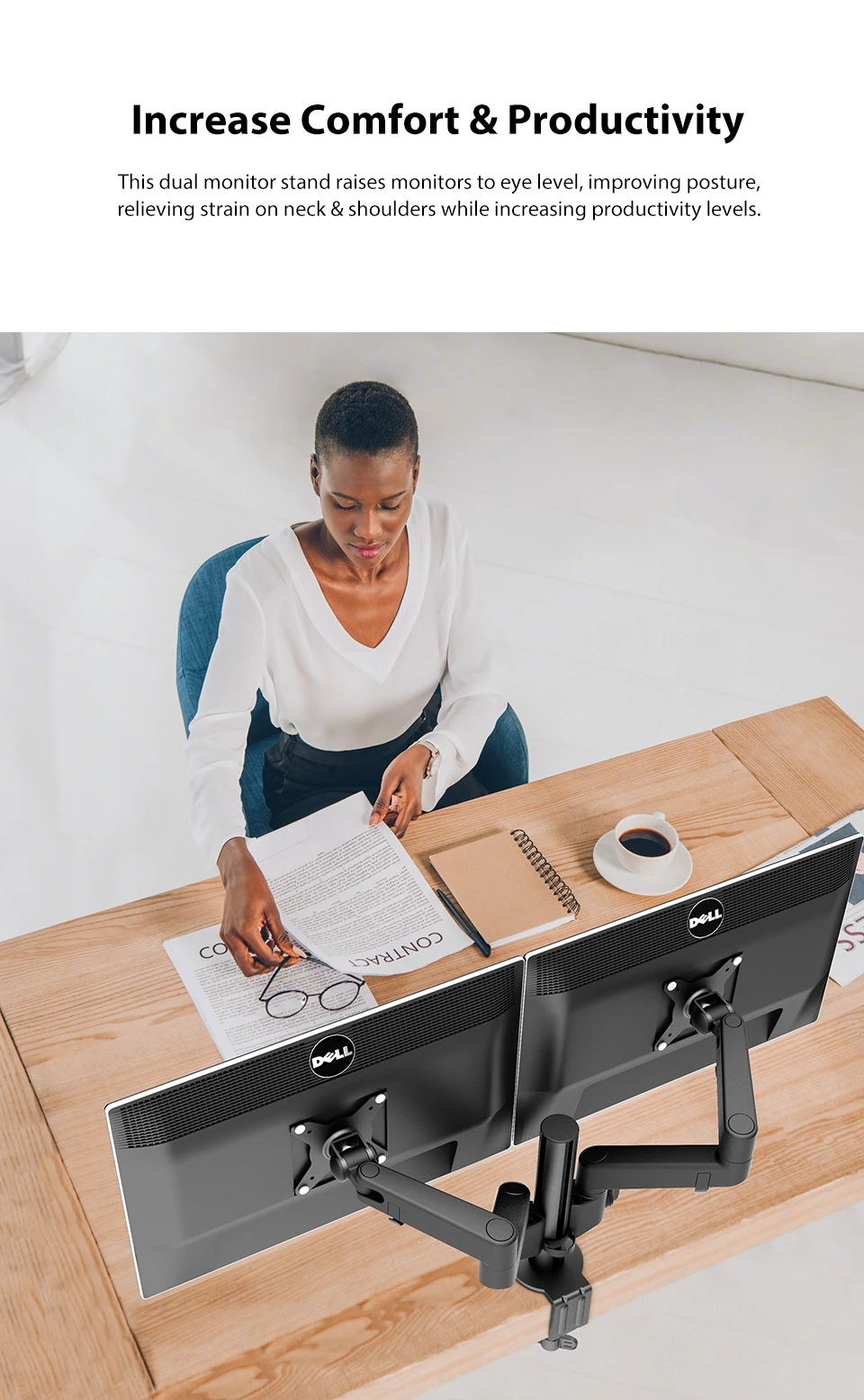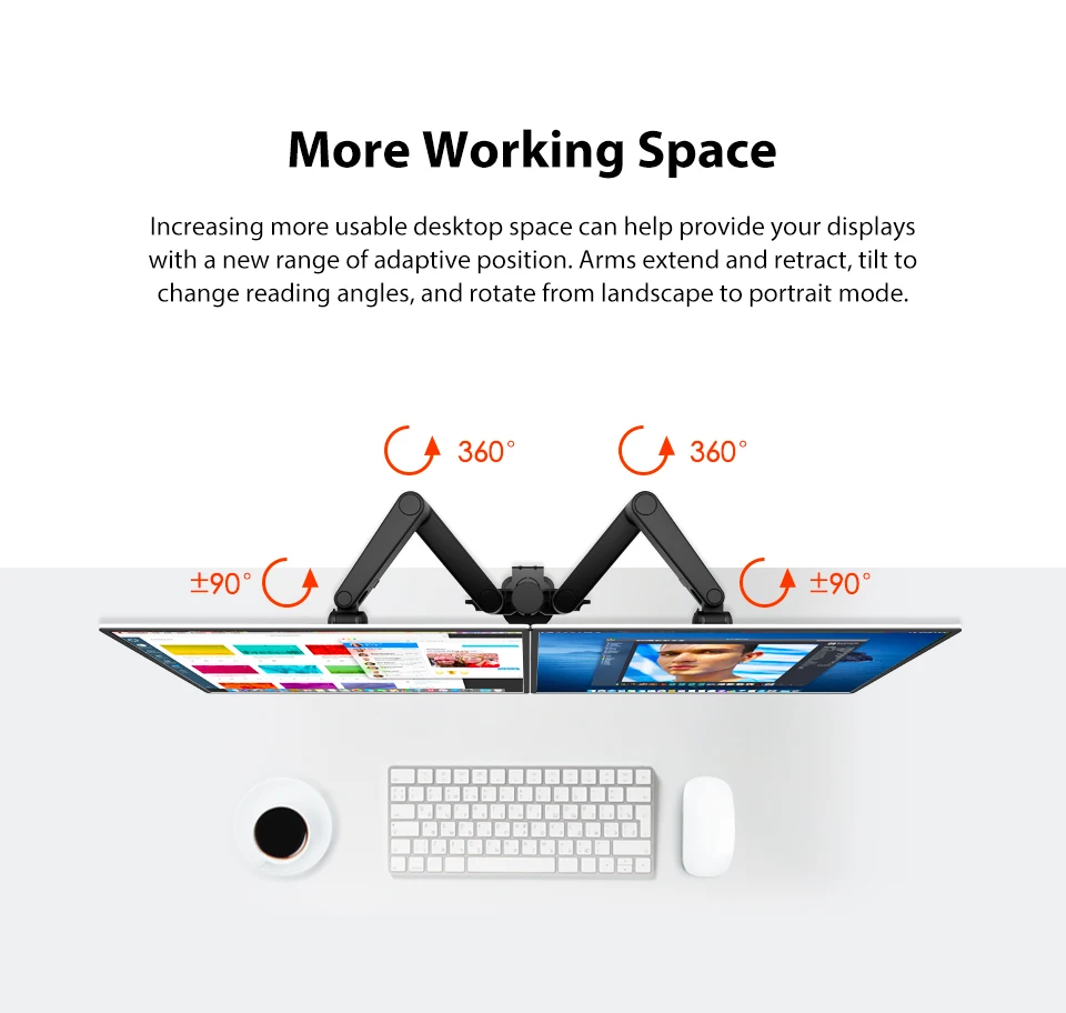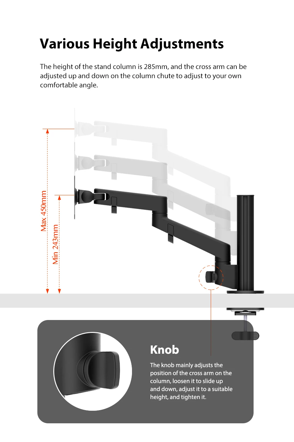 【여러 옵션】: 2 단 잠금 시스템은 1.6 "C-클램프 및 4" 그로밋 베이스와 호환됩니다. 책상 공간을 넓혀 효율성과 생산성을 두 배로 높여 스트레스를 줄이기 위해 보다 편안하고 인체공학적으로 정확한 위치에서 작업할 수 있습니다.