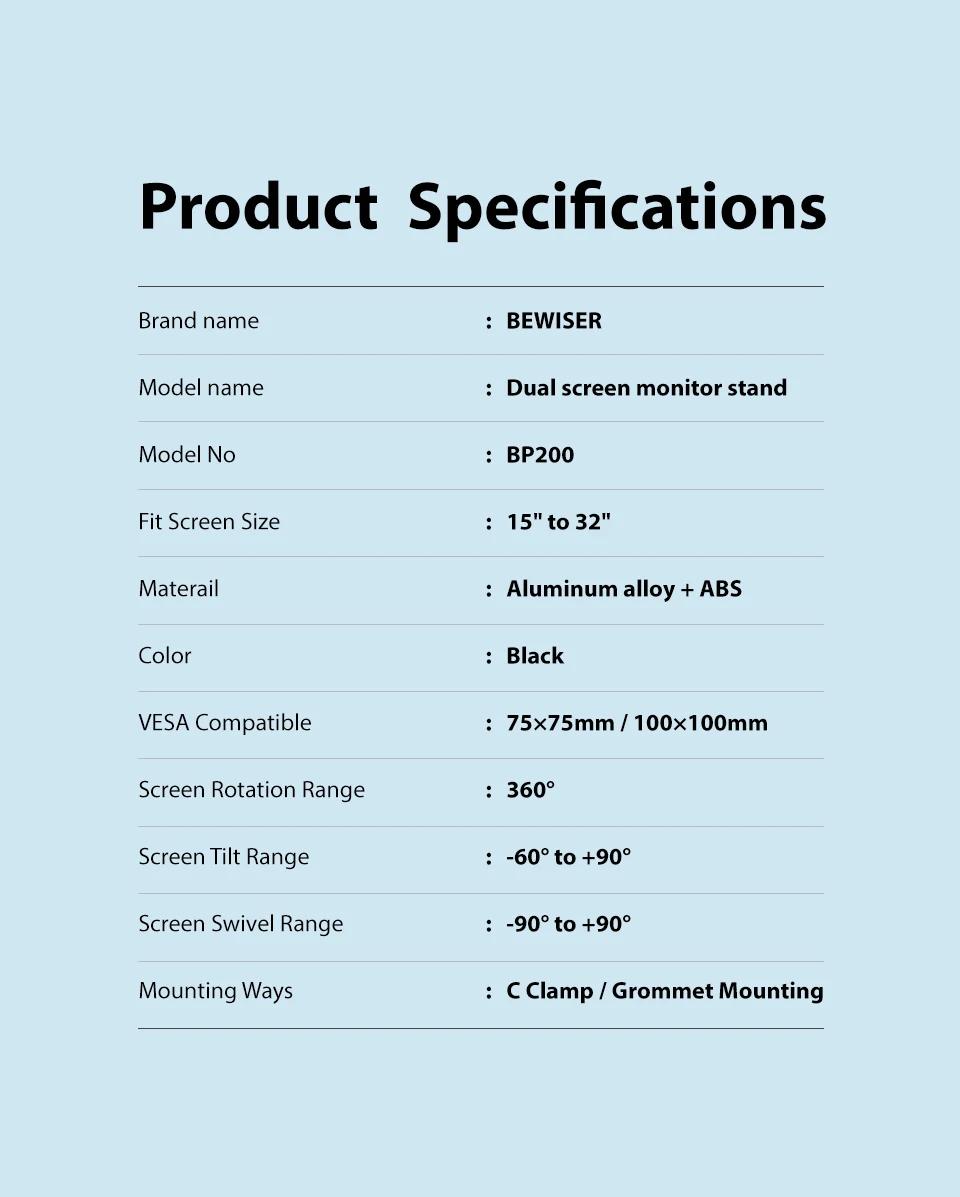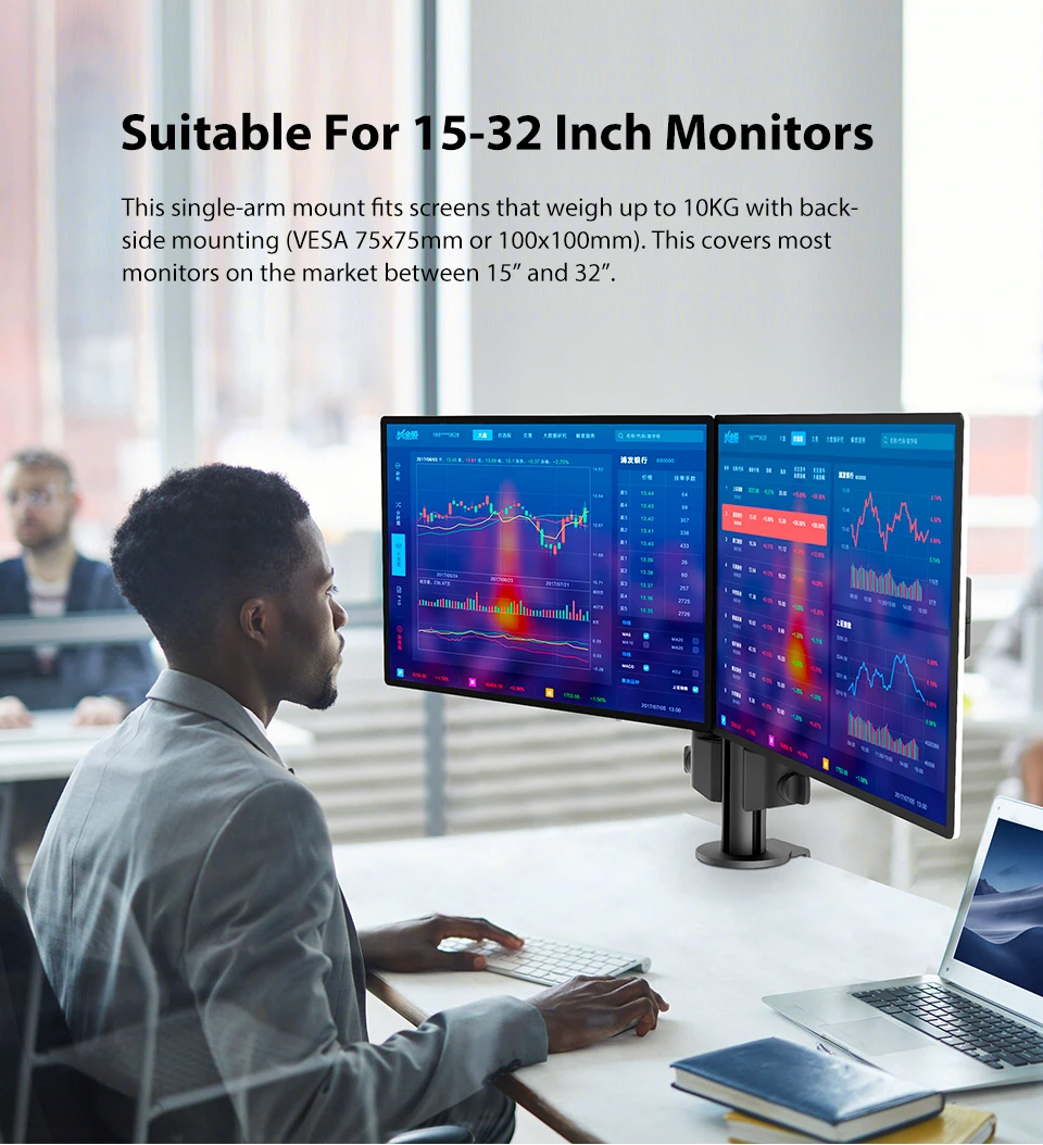 【호환성】: 최대 32 인치 모니터 장착, 최대 22 파운드 지원 무게 장착 플레이트 분리 가능 및 높이 조절 가능 VESA 장착 구멍 75x75mm 및 100x100mm 와 호환됩니다.