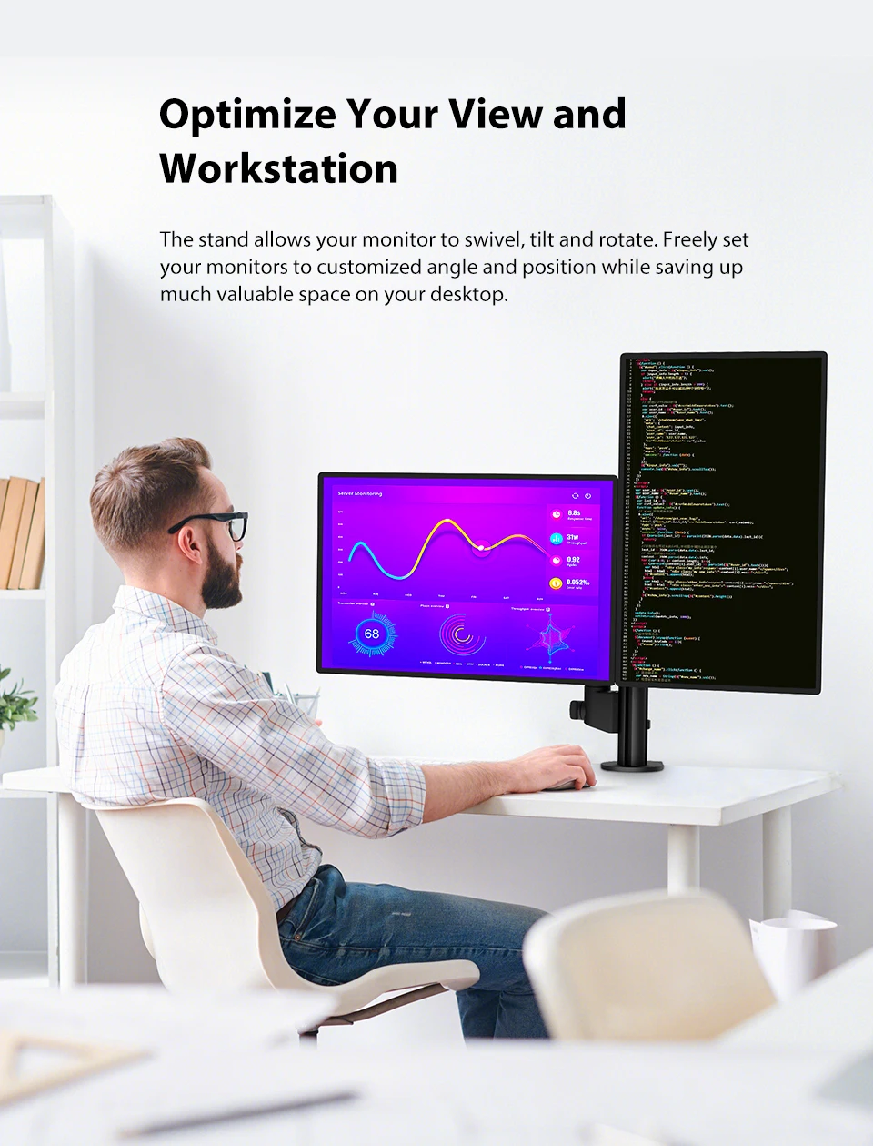 【쉬운 설치】: 패키지에는 필요한 모든 액세서리가 포함되어 있습니다. 10 분 안에 모니터 마운트를 쉽게 설치할 수 있습니다.