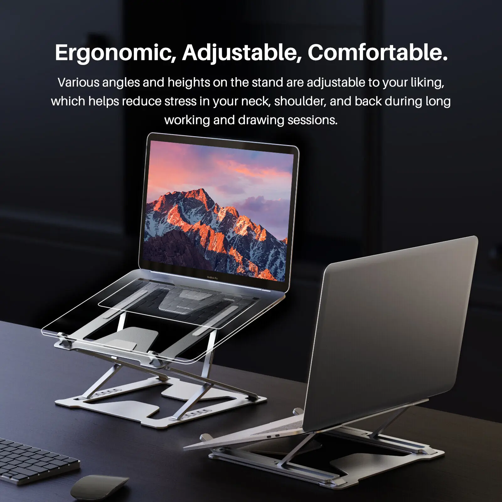 하나의 스탠드, 모든 장치 용. 라이저 스탠드는 독서와 폭음 영화를 볼 수 있으며 태블릿, 노트북 및 펜 태블릿 디스플레이, 10 ~ 17 인치 크기의 휴대용 컴퓨터에 적합합니다.