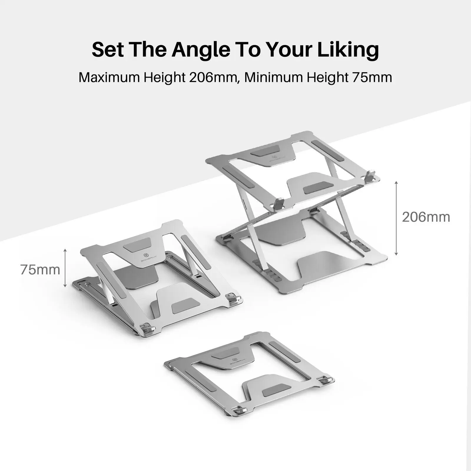 스탠드의 다양한 각도와 높이를 원하는대로 조절할 수 있으므로 장시간 작업 및 그리기 세션에서 목, 어깨 및 등의 통증을 줄일 수 있습니다. 최대 높이는 206mm, 최소 높이는 75m 입니다.