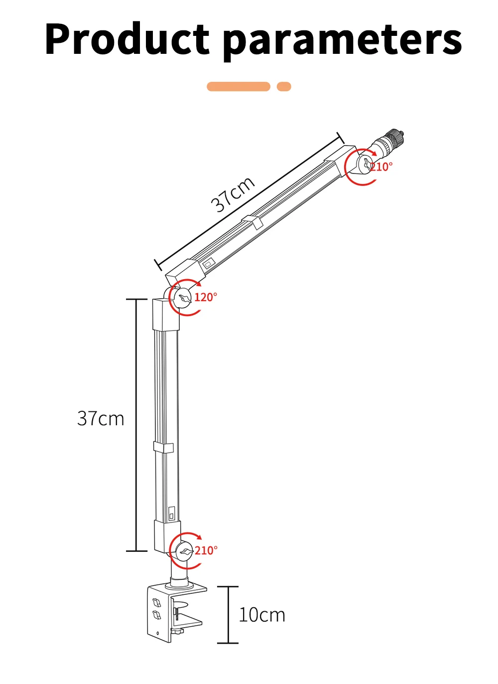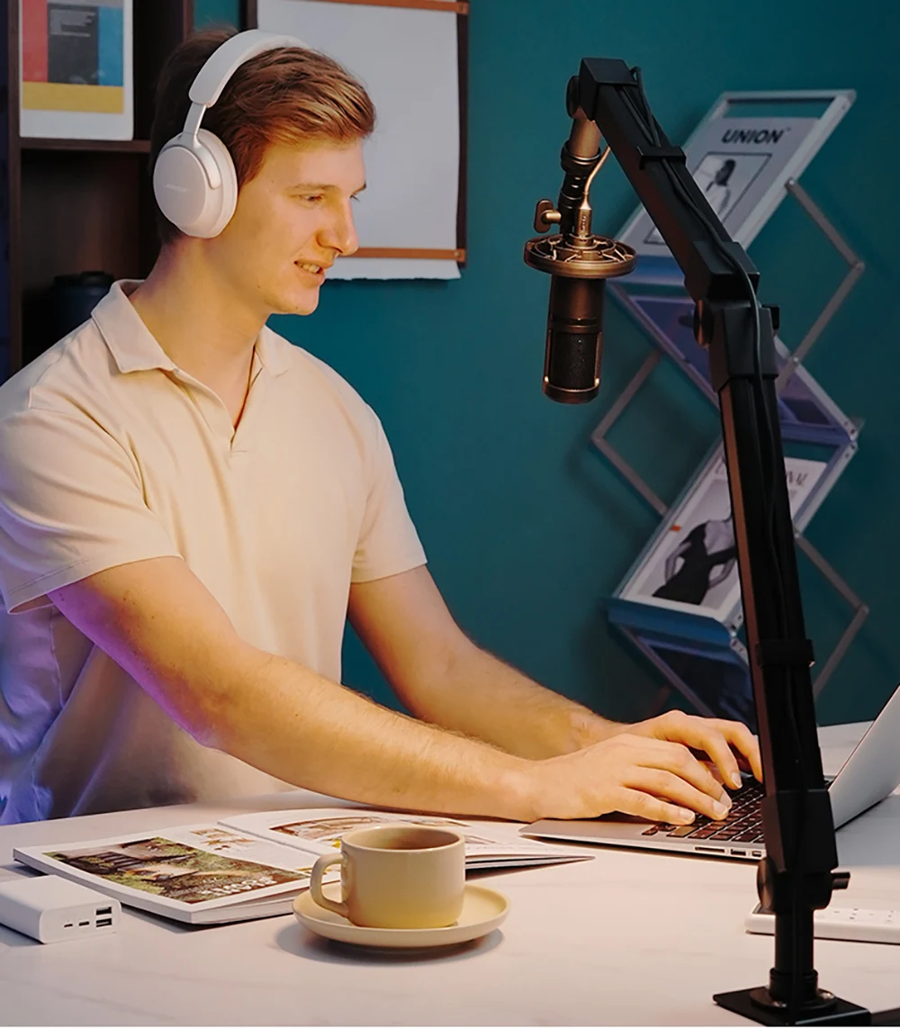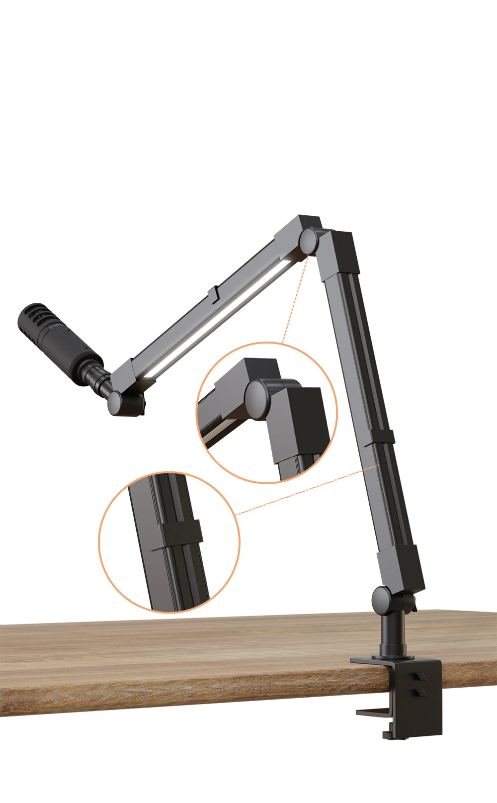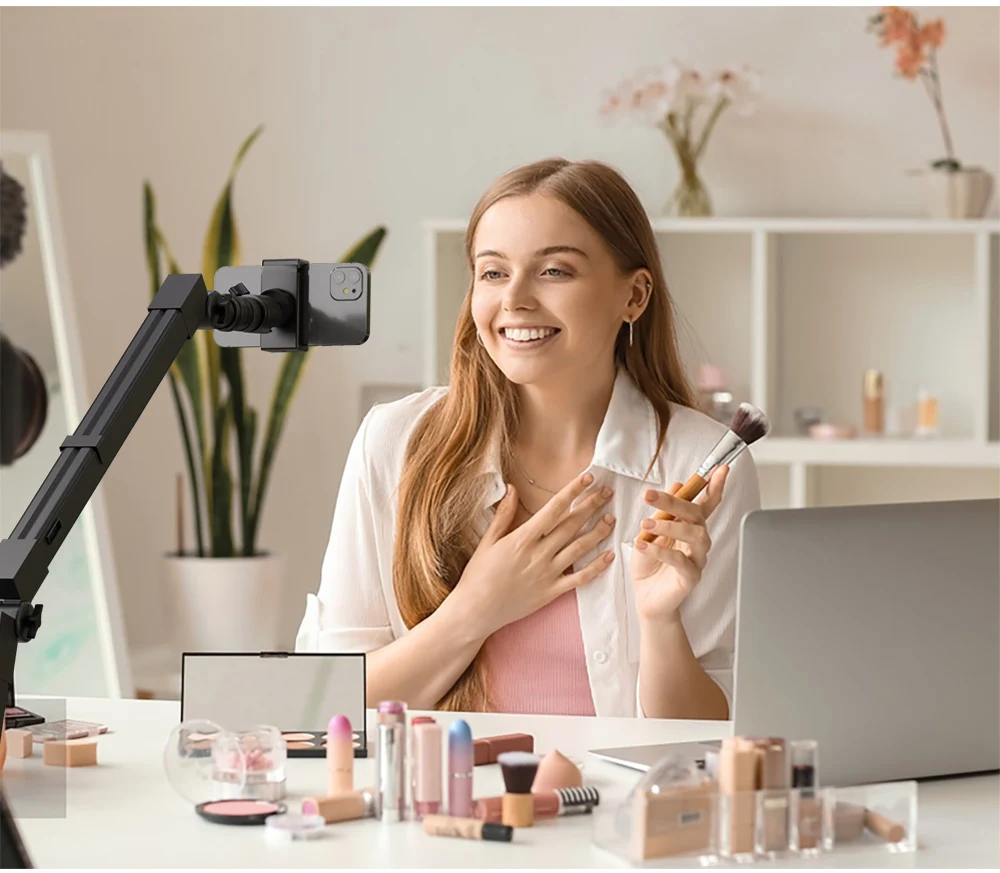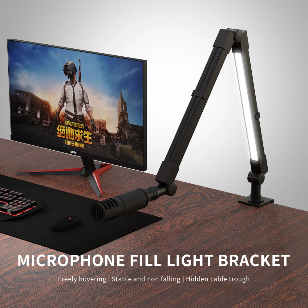 SH LED Desktop Microphone Holder With Video Light Adjustable With Remote Control PANEL WITH SCREEN From 120 ° to 210 ° Bear 1500g Adjustable Tabletop Bracket Stand