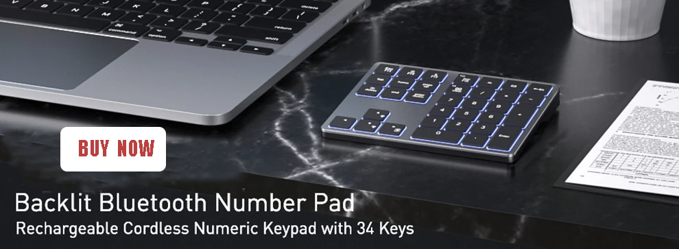 【다기능 22-키 숫자 키패드】 22 개의 풀 사이즈 키 (가위 스위치 및 조용한 키캡으로 향상) 로 0-10 개의 숫자 키, +,-,*,/, numLock, ESC, PgUp, PgDn, 삭제 및 계산기에 빠르게 액세스하고 생산성을 향상시키기위한 바로 가기 키. 다기능 블루투스 숫자 키패드는 Excel에서 일하는 부기, 성적을 입력하는 교사, 데이터 입력을위한 사무원 등에게 이상적인 선택입니다.