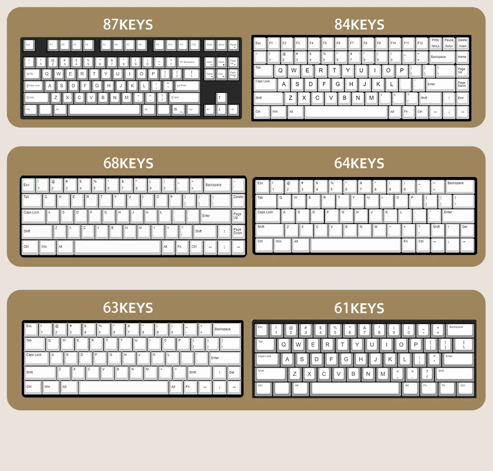 표준 ANSI GK61/63/64/67/68/RK836(71 키)/78/84/87/96(100 키) 와 호환 가능/980/104/108 MX는 공간이 6.25u 또는 7u 인 기계식 키보드를 전환합니다.