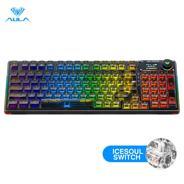 태블릿 키보드 노트북 블루투스 무선 휴대용 AULA F98PRO 기계식 핫 스왑 가능 투명 RGB 백라이트 커스텀