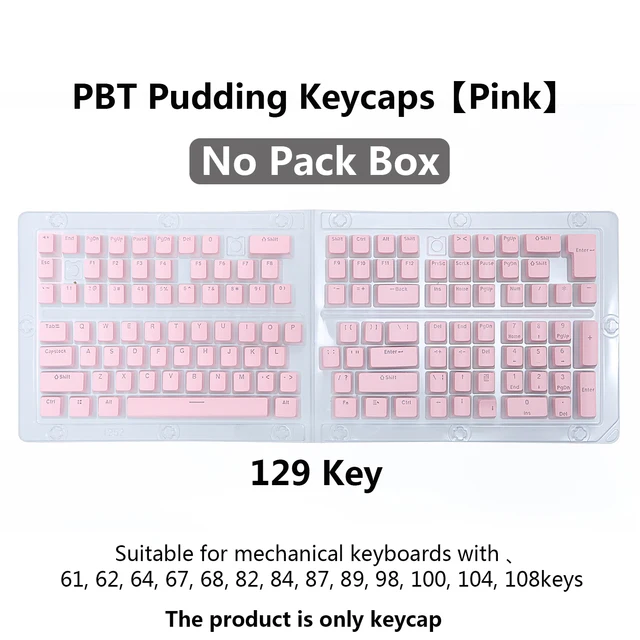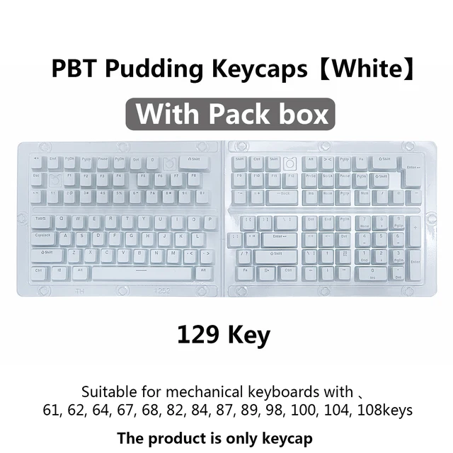 61, 62, 64, 67, 68, 82, 84, 87, 89, 98, 100, 104 및 108 키가있는 기계식 키보드에 적합한 총 129 개의 키캡이 있습니다.