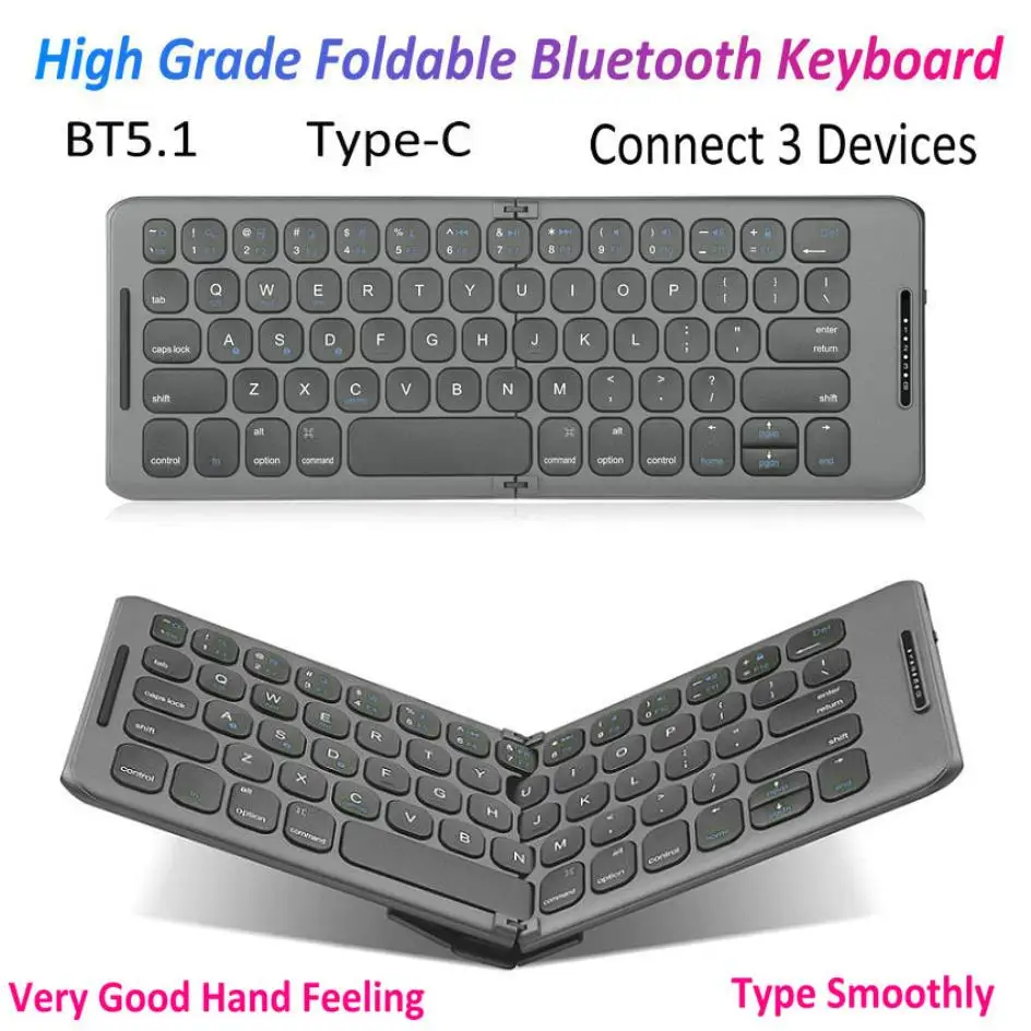 고급 미니 휴대용 접이식 접이식 무선 블루투스 5.1 키보드 타입 C 충전 포트 윈도우/안드로이드/iOS/맥 OS BT 기능과 같은 컴퓨터 노트북 태블릿 PC 전화 등 스마트 장치