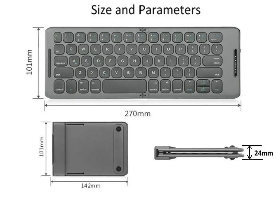 포장 목록: 접이식 키보드, Type-c 충전 케이블, 수동