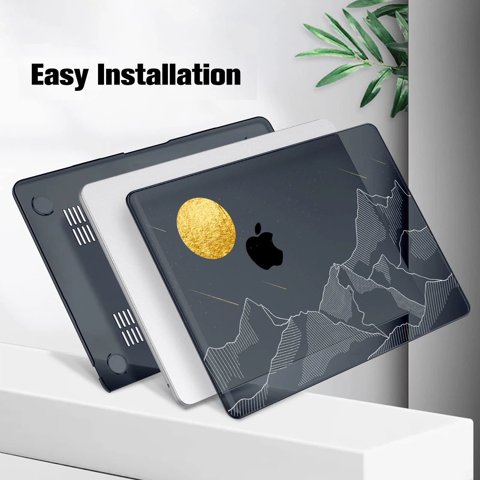 설치가 쉽고 통풍이 잘되어 안전한 열 방출을 보장하고 MacBook을 긁힘이나 긁힘으로부터 보호합니다.