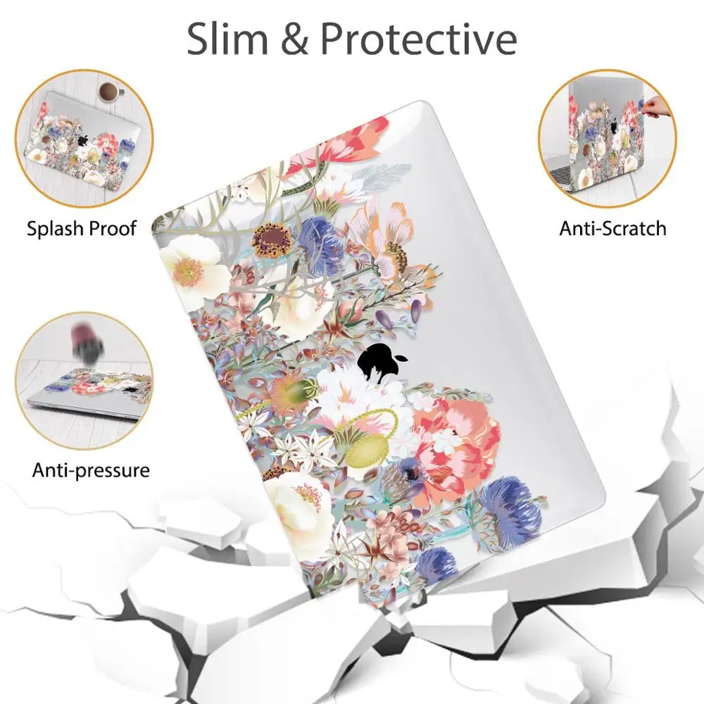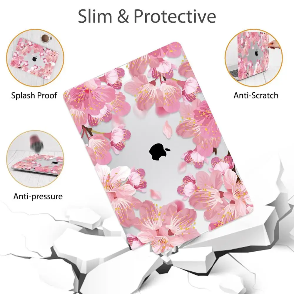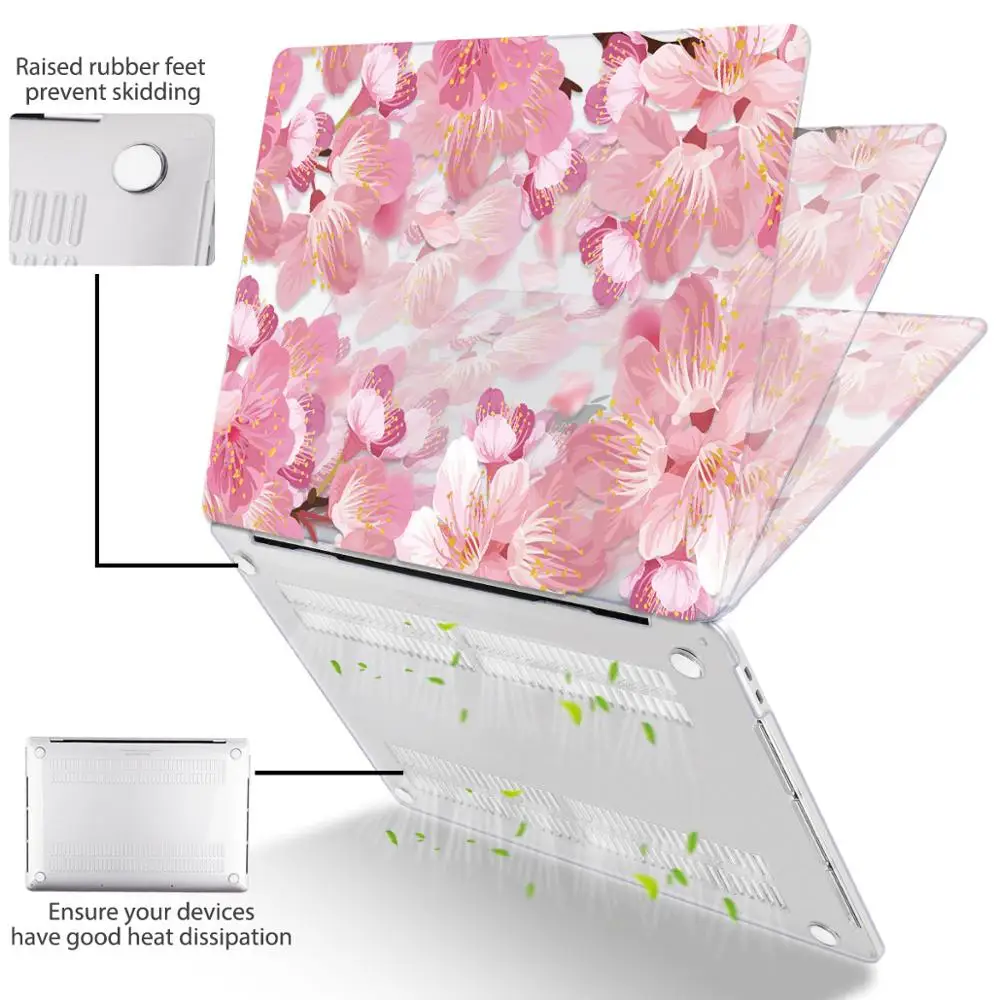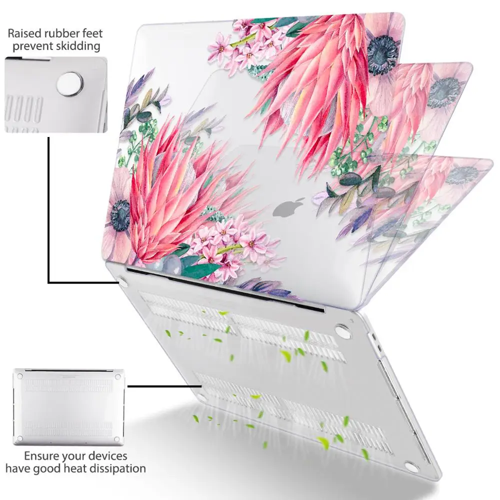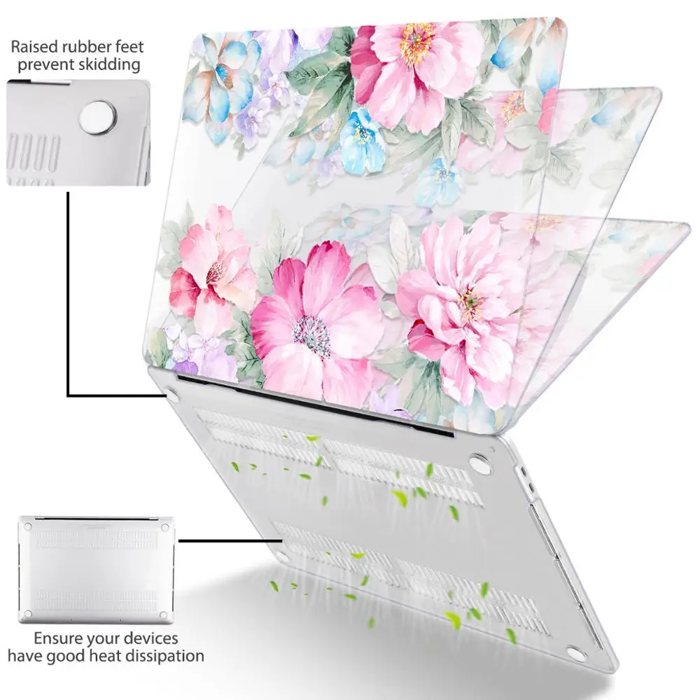 맥북 에어 13 인치 A1932 케이스 A1466 커버 맥북 프로 13 16 인치 터치 바 A2141 A2159 용 플라워 프린트 노트북 케이스