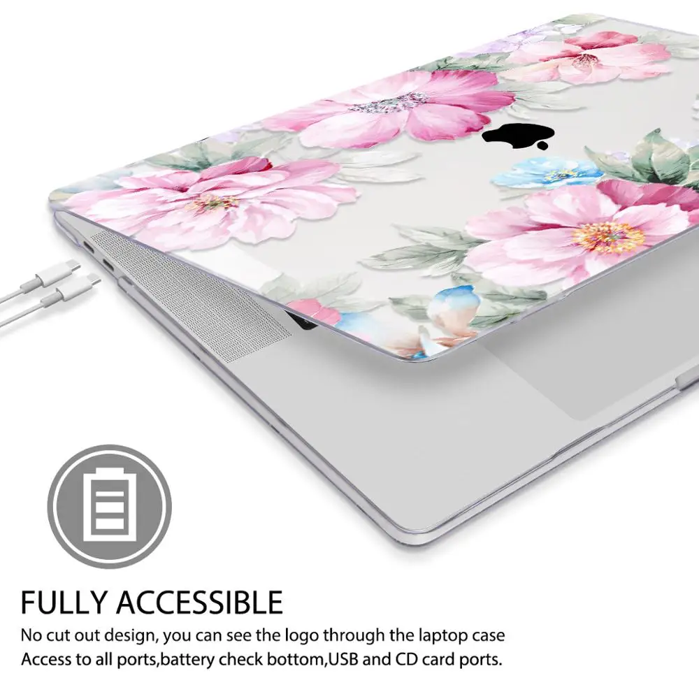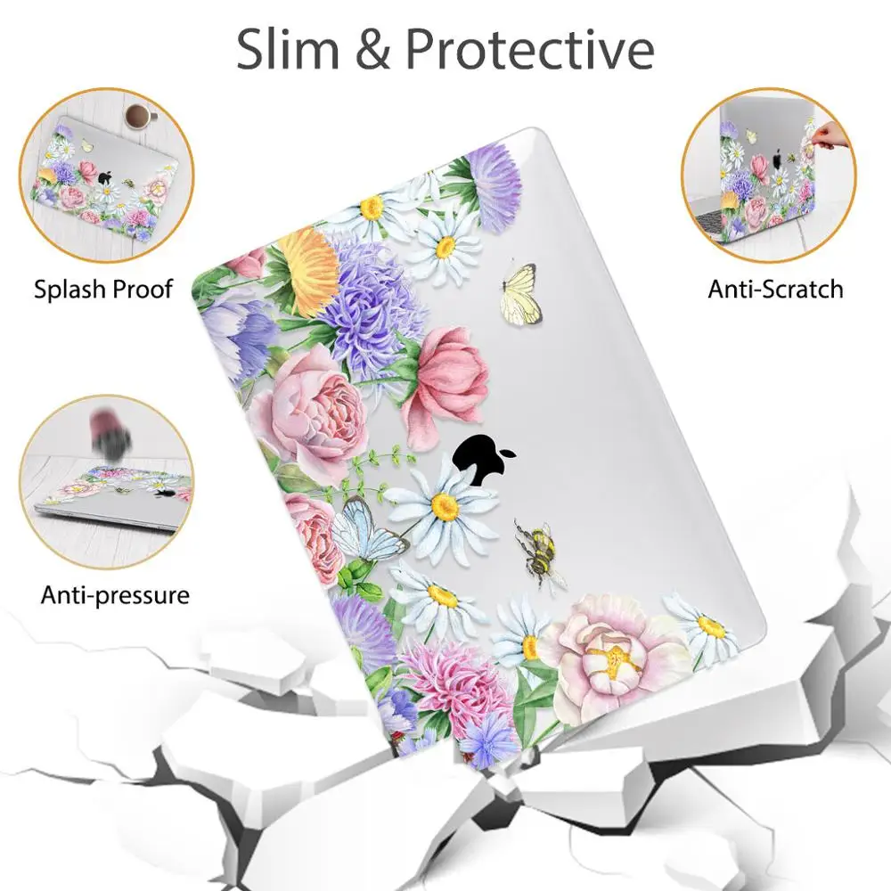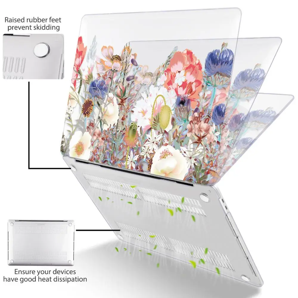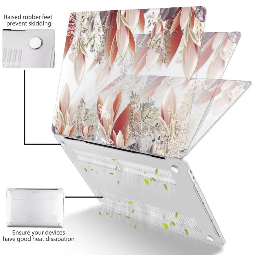 맥북 에어 13 인치 A1932 케이스 A1466 커버 맥북 프로 13 16 인치 터치 바 A2141 A2159 용 플라워 프린트 노트북 케이스