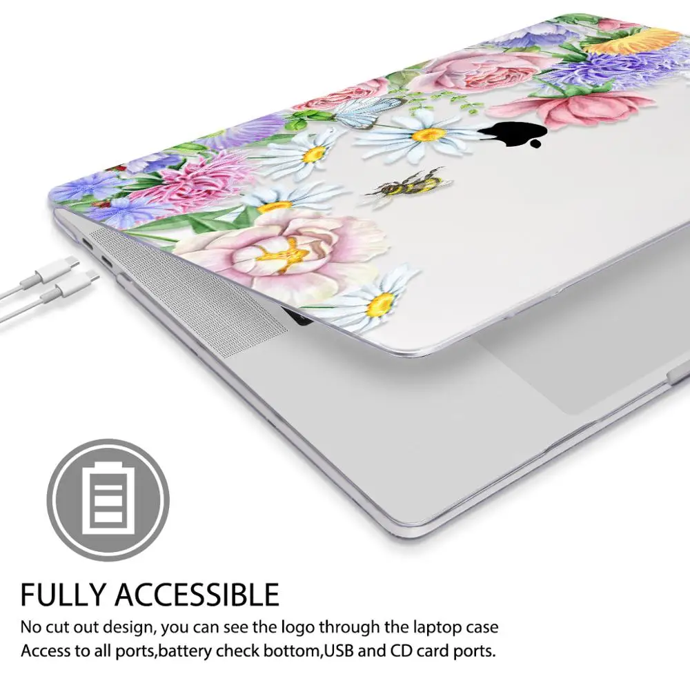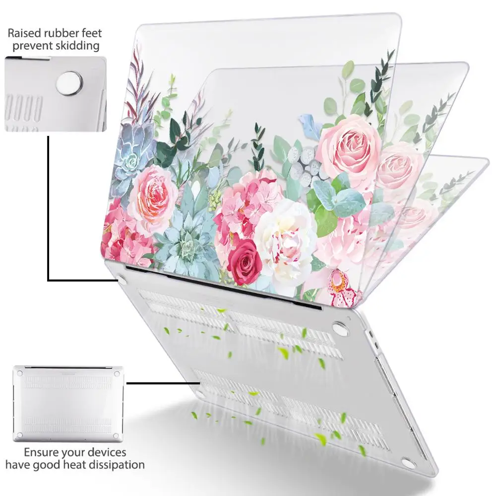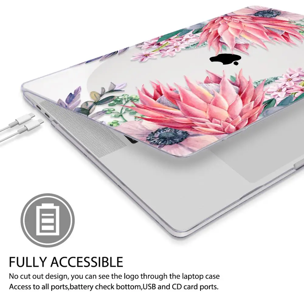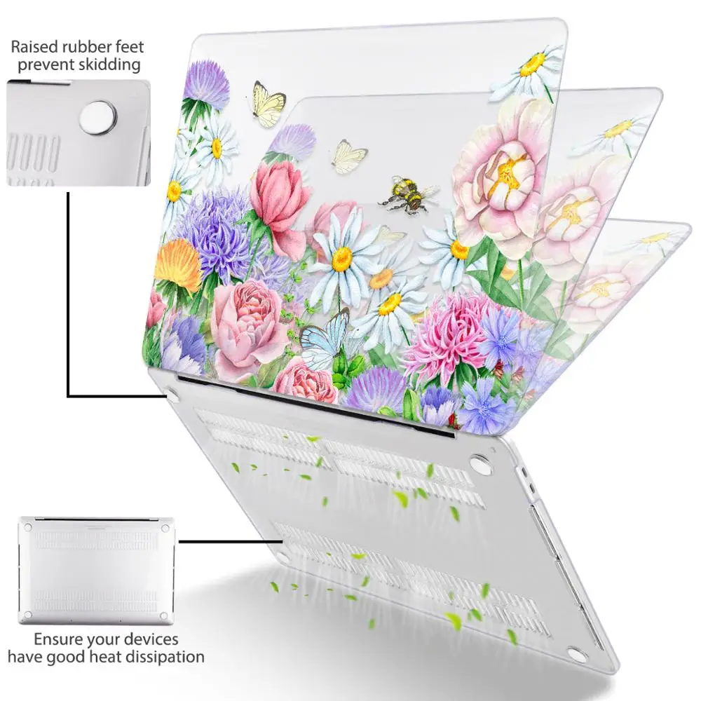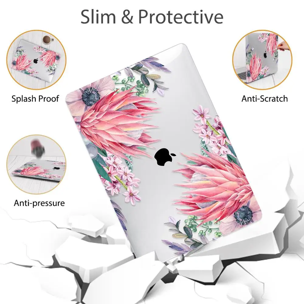 맥북 에어 13 인치 A1932 케이스 A1466 커버 맥북 프로 13 16 인치 터치 바 A2141 A2159 용 플라워 프린트 노트북 케이스
