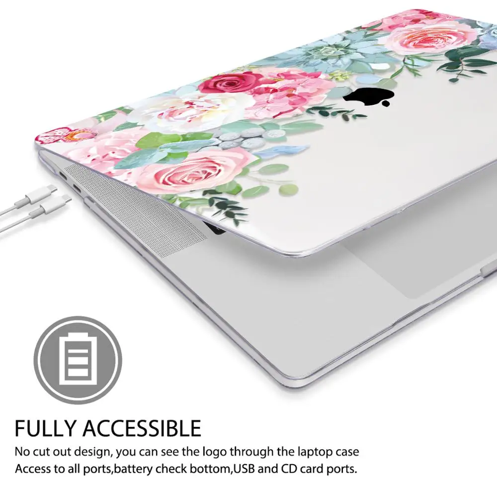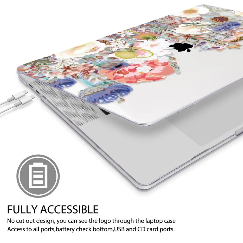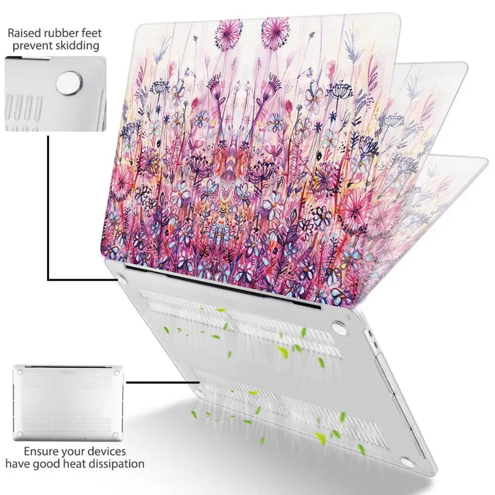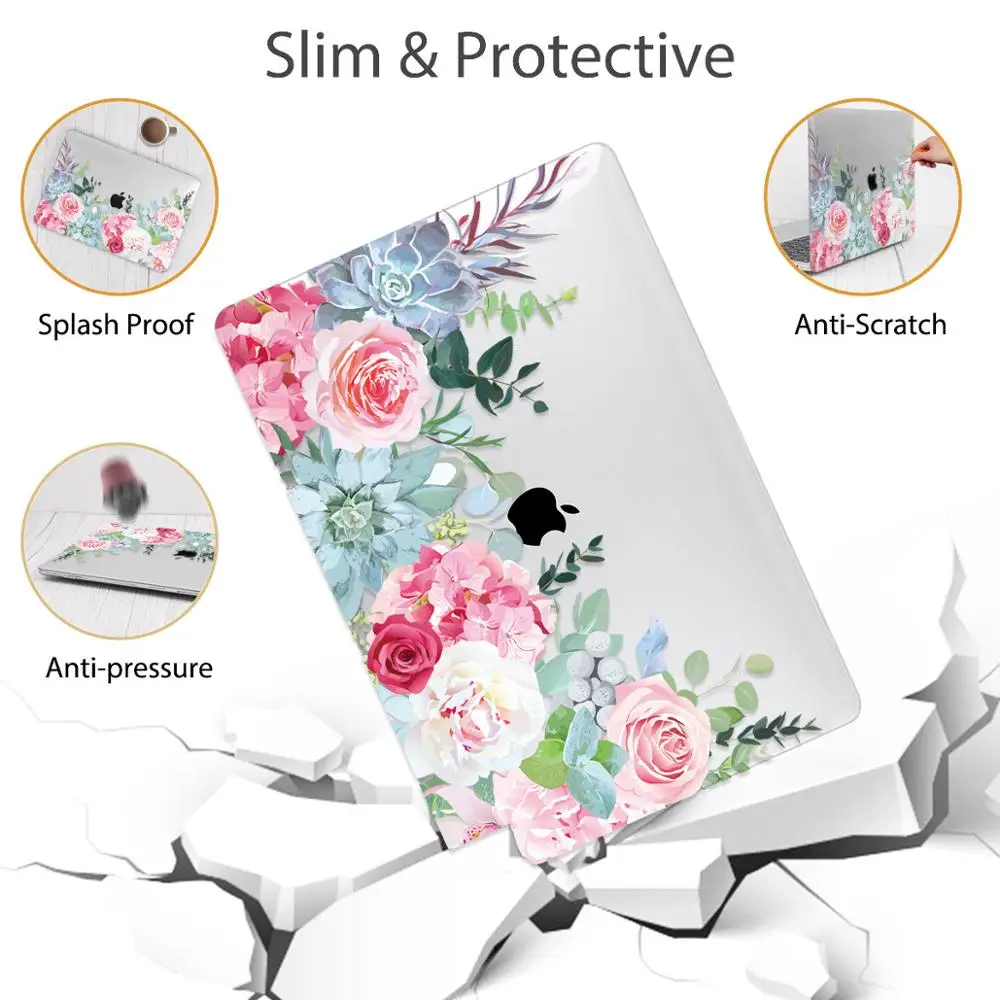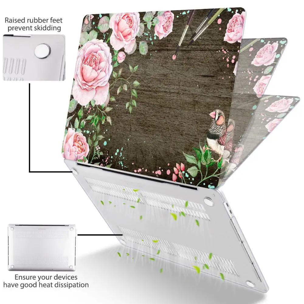 맥북 에어 13 인치 A1932 케이스 A1466 커버 맥북 프로 13 16 인치 터치 바 A2141 A2159 용 플라워 프린트 노트북 케이스