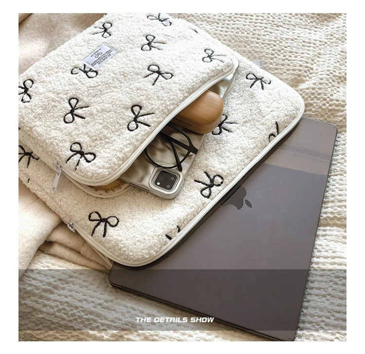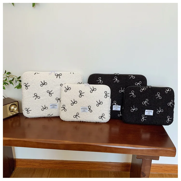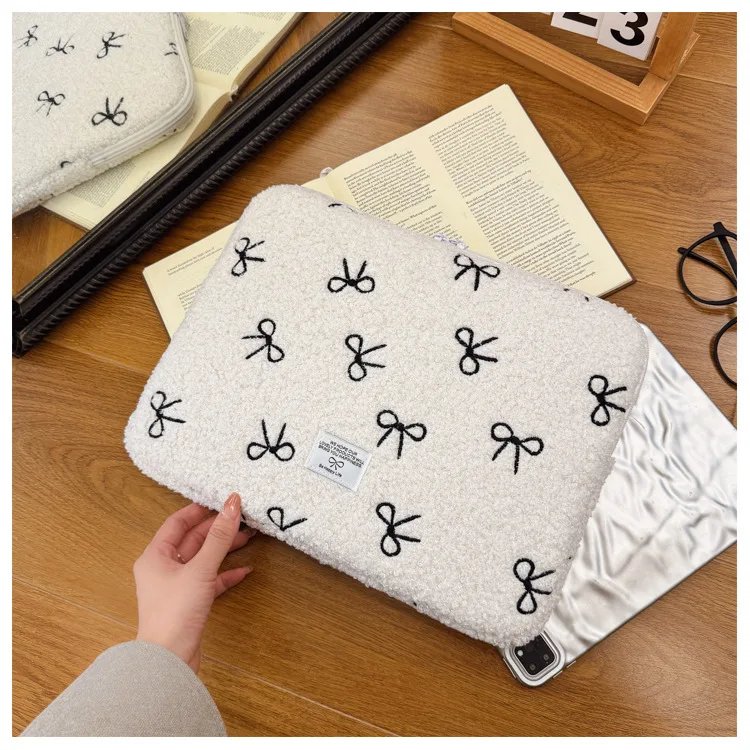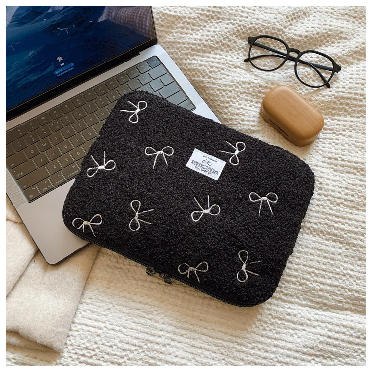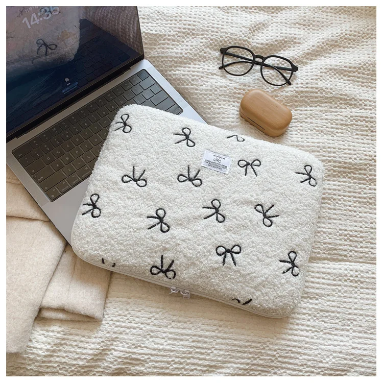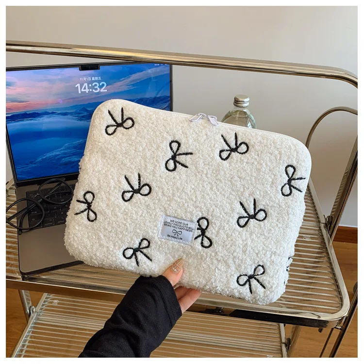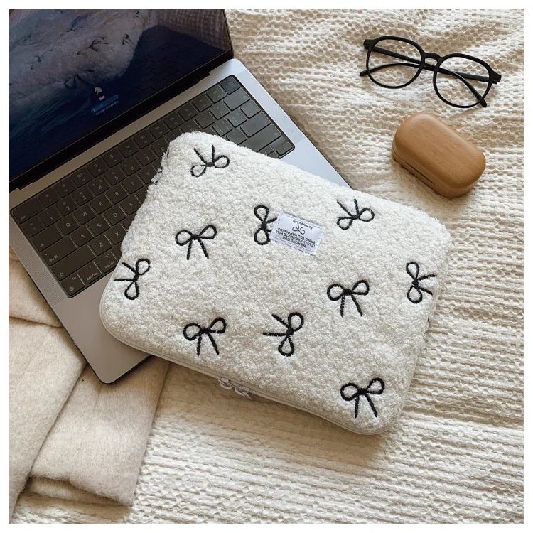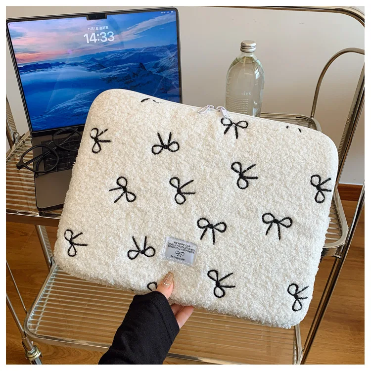 부드러운 봉제 노트북 슬리브 가방 13-14 인치 11 인치 PC 커버 충격 방지 귀여운 활 보호 케이스 신제품