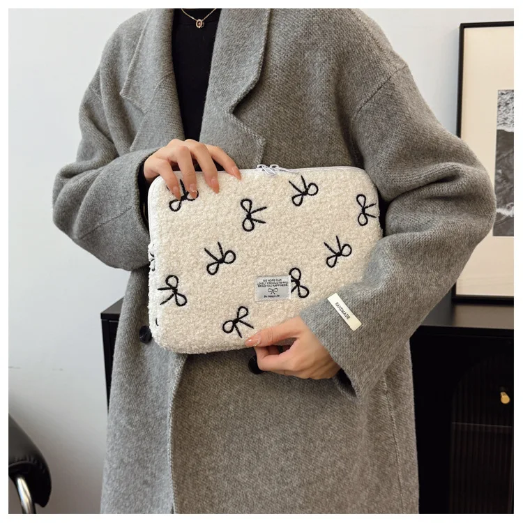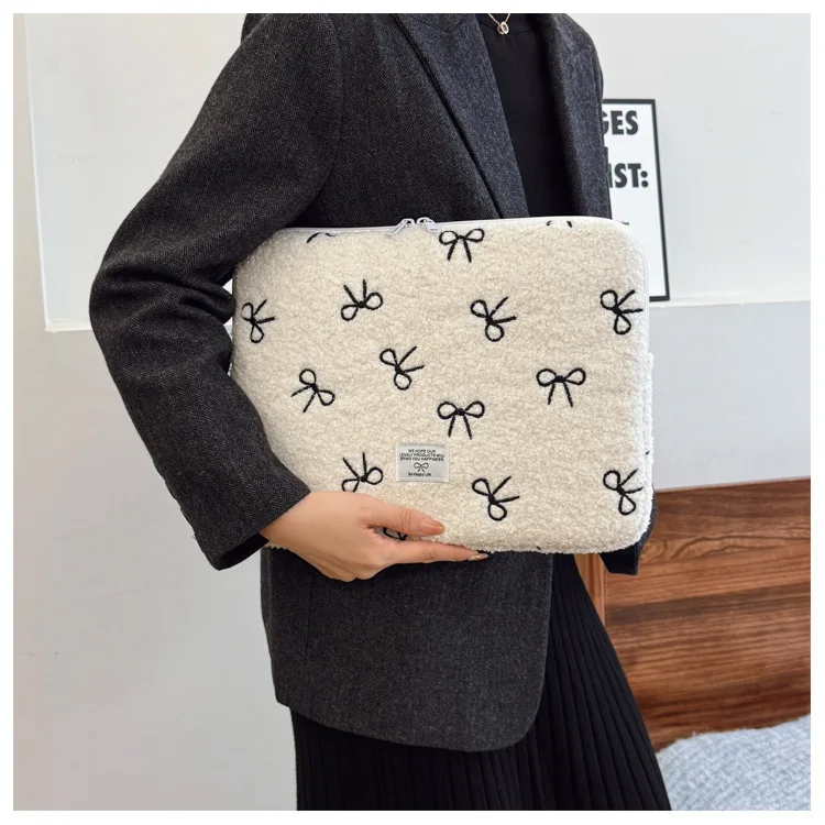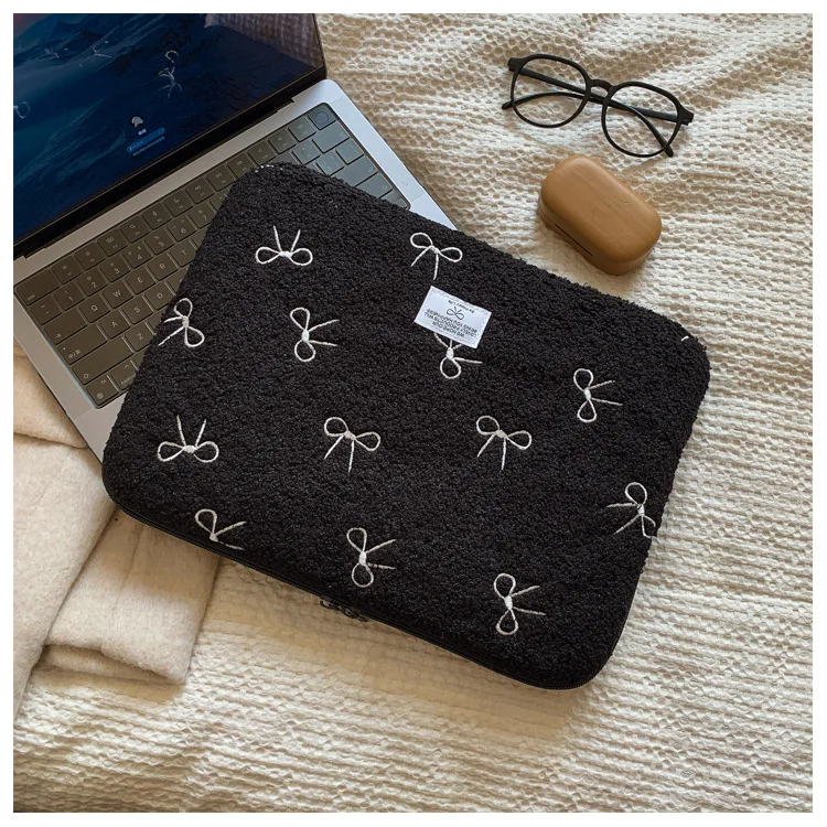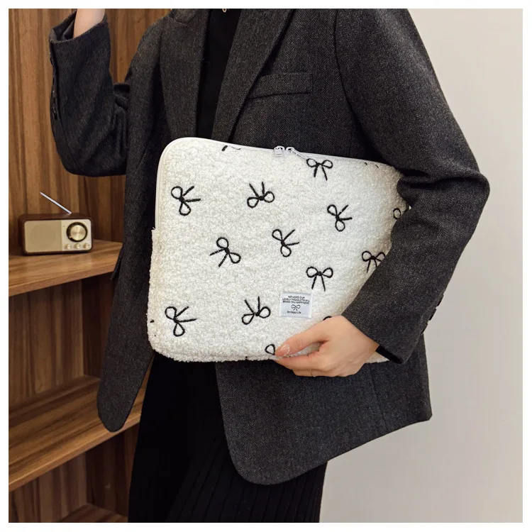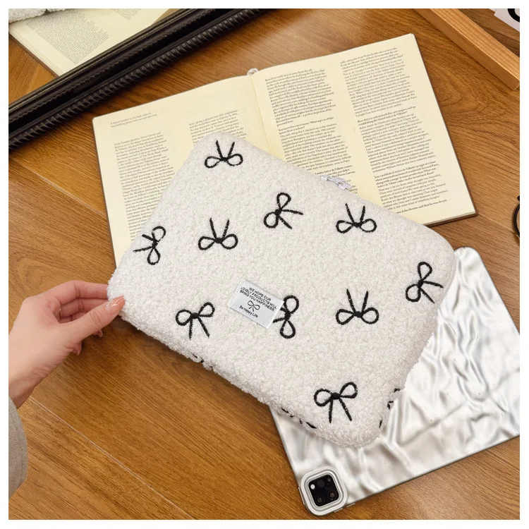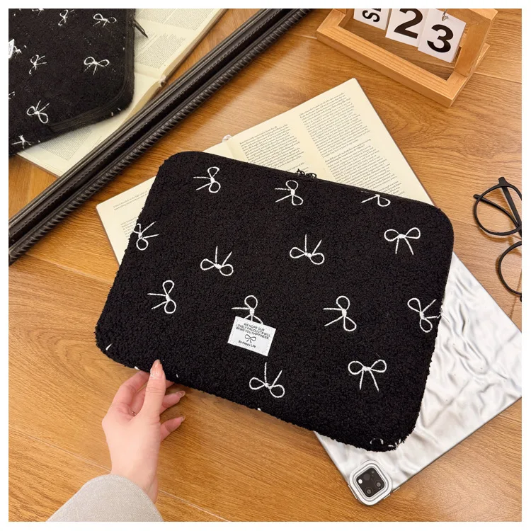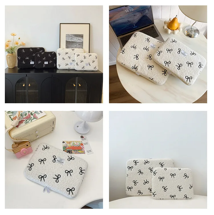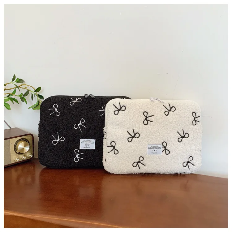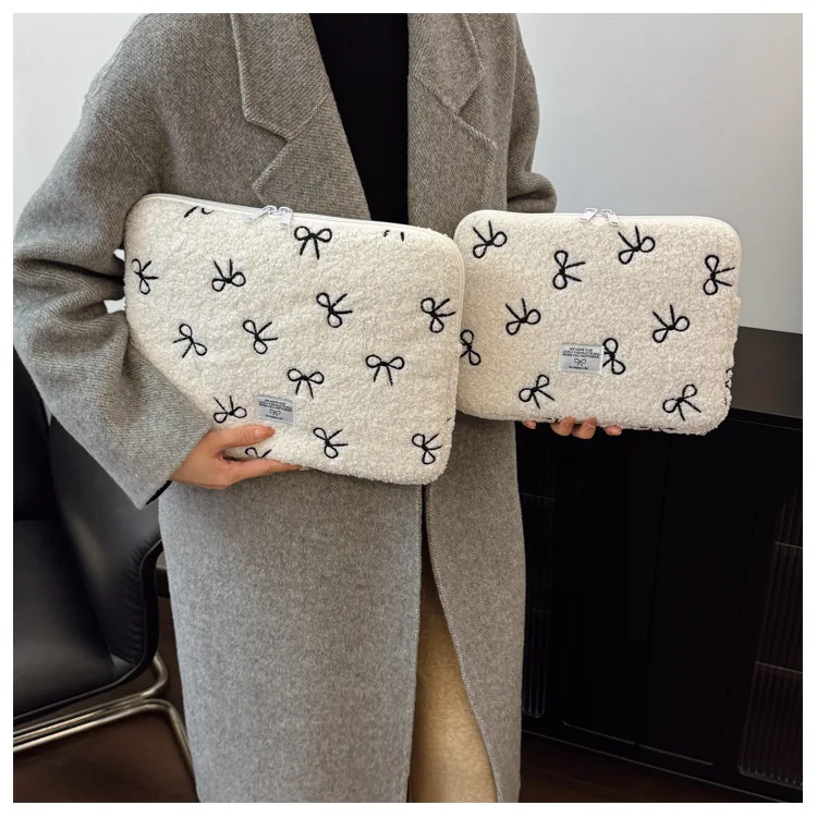 부드러운 봉제 노트북 슬리브 가방 13-14 인치 11 인치 PC 커버 충격 방지 귀여운 활 보호 케이스 신제품