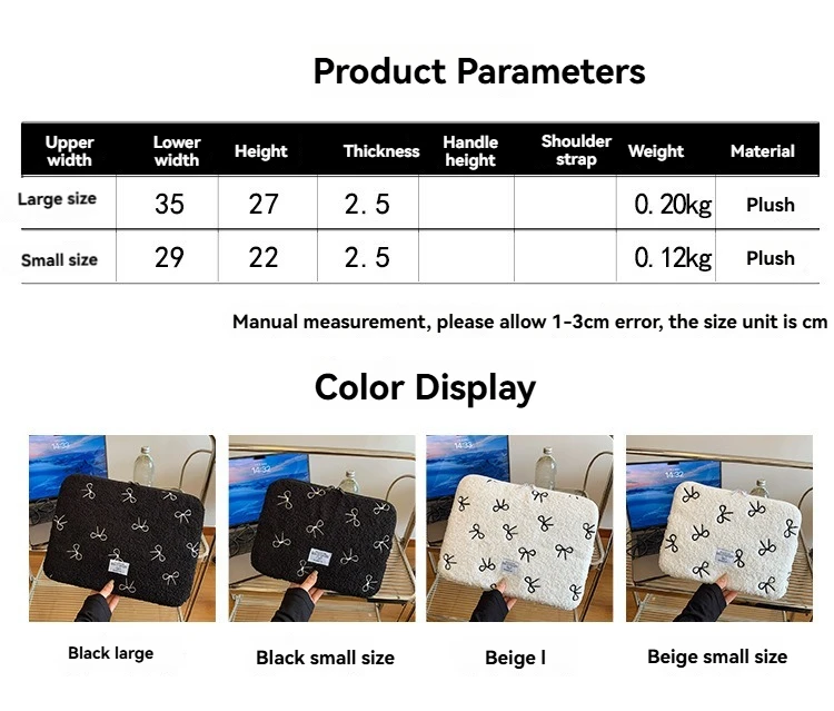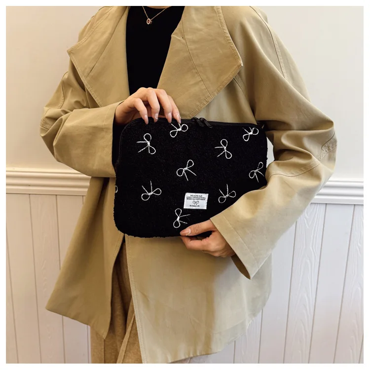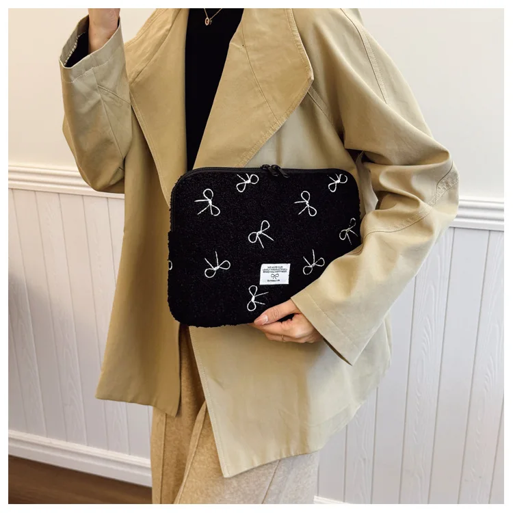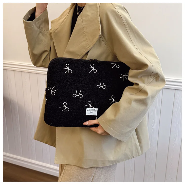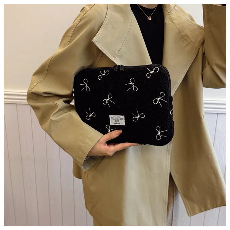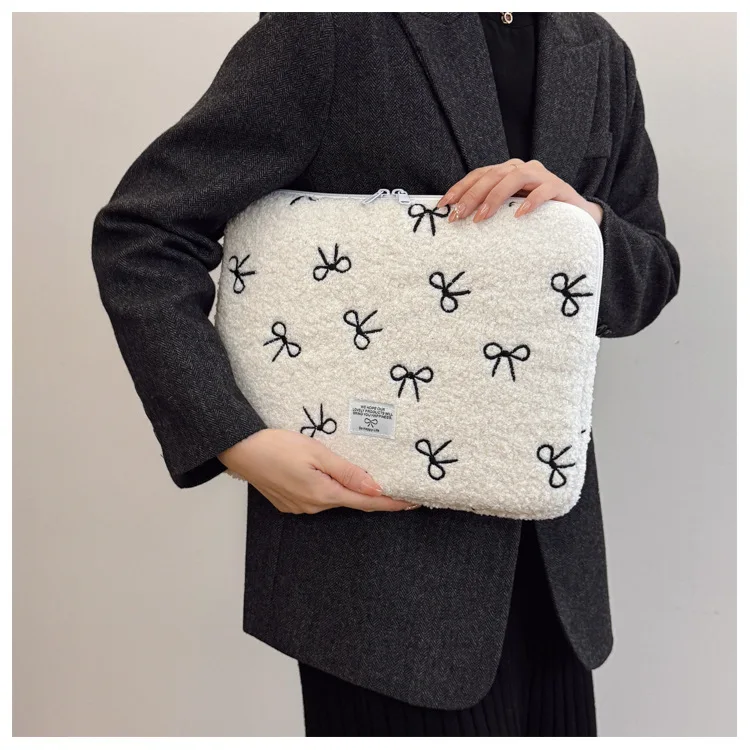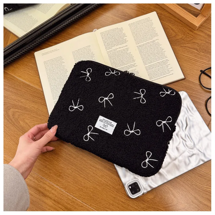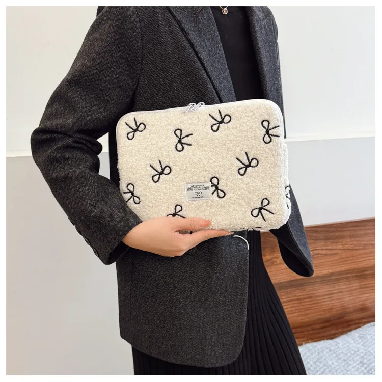 부드러운 봉제 노트북 슬리브 가방 13-14 인치 11 인치 PC 커버 충격 방지 귀여운 활 보호 케이스 신제품