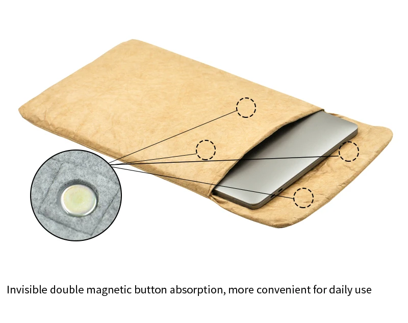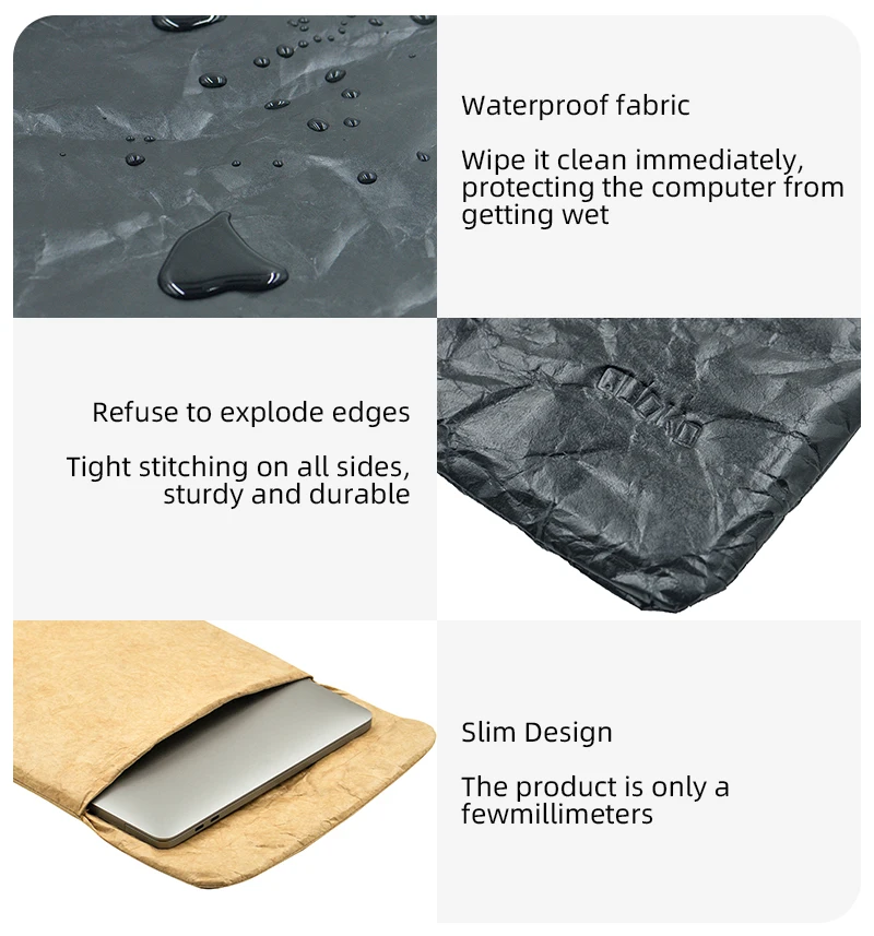이 노트북 가방은 Tyvek 종이 소재로 만들어졌으며 가볍고 내구성이 뛰어납니다. 방수 및 내마모성.