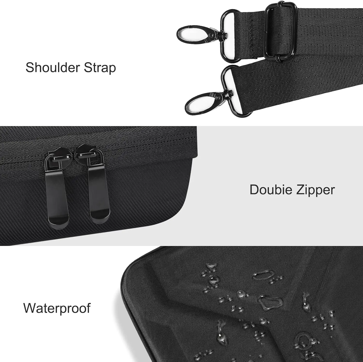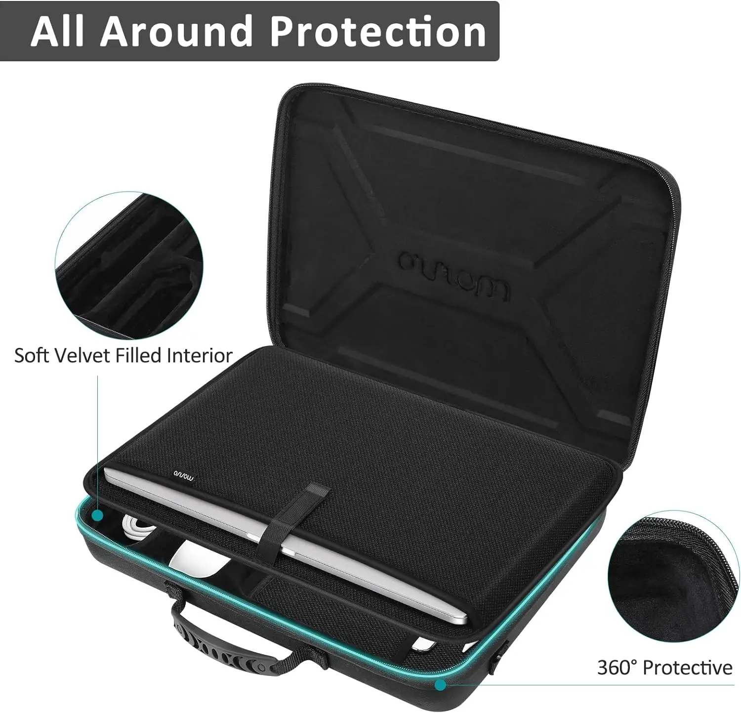 1. 내구성이 뛰어난 EVA 소재, 충격 방지, 방진 및 방수. 부드러운 벨벳으로 채워진 내부는 물건이 긁히거나 부딪히는 것을 방지합니다. 노트북 숄더백은 180 도에서 완전히 열 수 있으며 노트북과 태블릿을 보관할 수있는 2 개의 별도 소프트 포켓이 있으며 물건에 쉽게 액세스 할 수 있습니다.