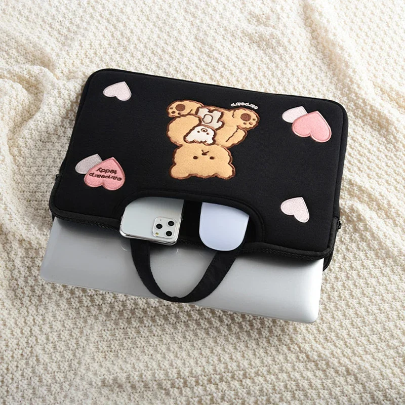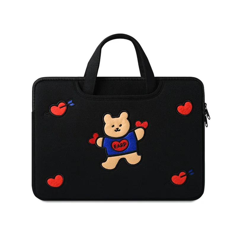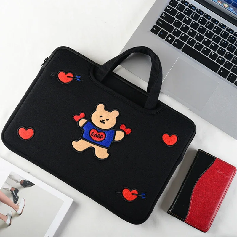 귀여운 만화 곰 노트북 가방 노트북 소매 맥북 에어 프로 HP 레노버 13 14 15 15.6 16 인치 노트북 휴대 핸드백 케이스