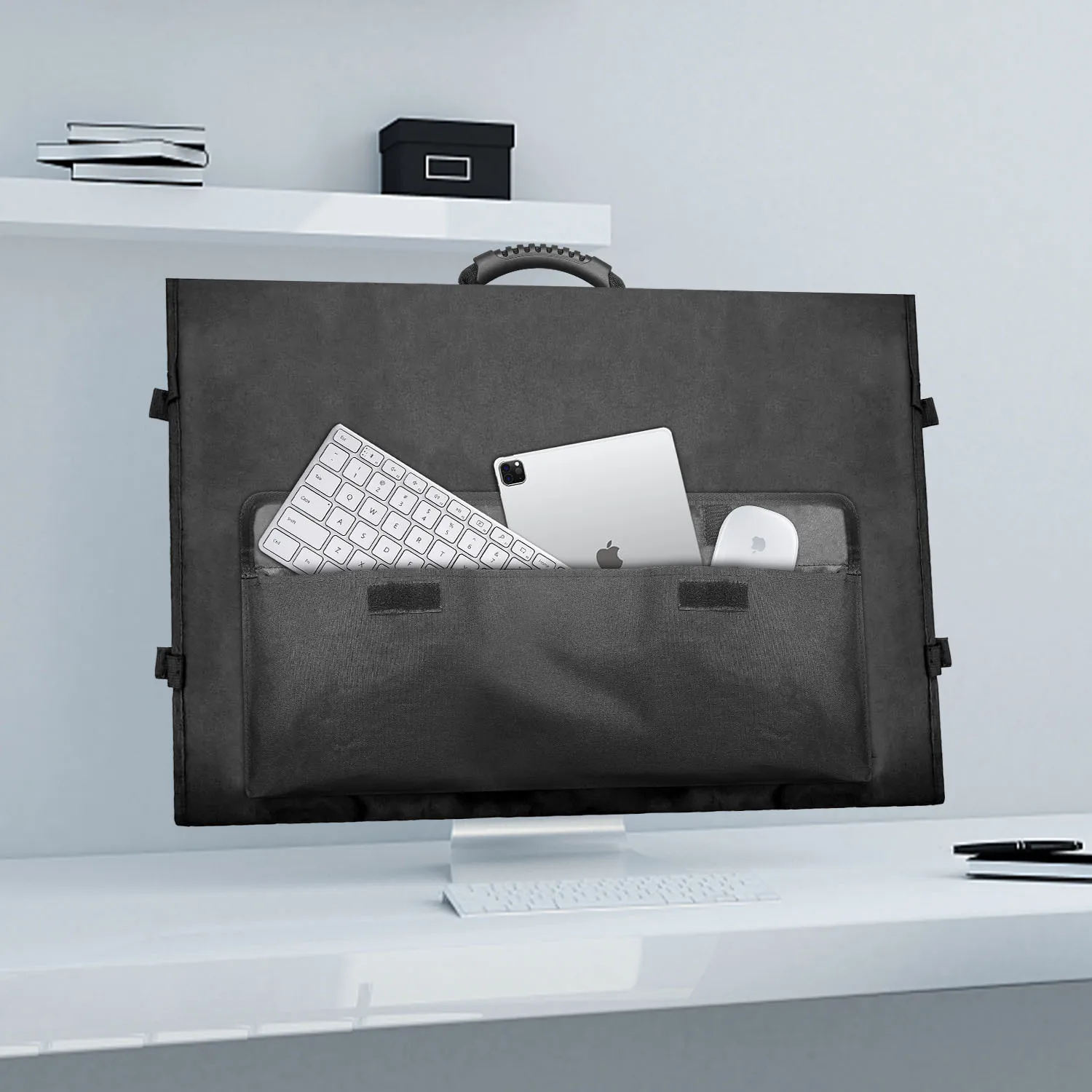 방수 나일론 외부 소재를 사용하여 견고하고 내구성이 뛰어난 부드러운 벨벳 안감은 아이맥 모니터를 먼지, 먼지, 흠집으로부터 보호하고 더 나은 보호를 제공합니다.
