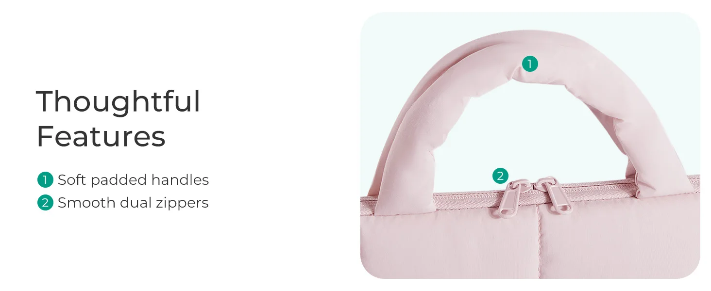 클라우드처럼 초경량 & 소프트: 15.1 "× 11.0" × 0.6 "에서 노트북 슬리브는 새로운 페더급 챔피언입니다! 몽환적인 Taslon 직물로 제작되어 너무 가볍고 부드러워서 들고 다니는 것을 잊을 수 있습니다. 이 노트북 케이스는 기기의 아늑한 포옹과 같습니다. 스타일이나 보호를 희생하지 않고 가볍게 여행하기를 원하는 전문가에게 적합합니다.
