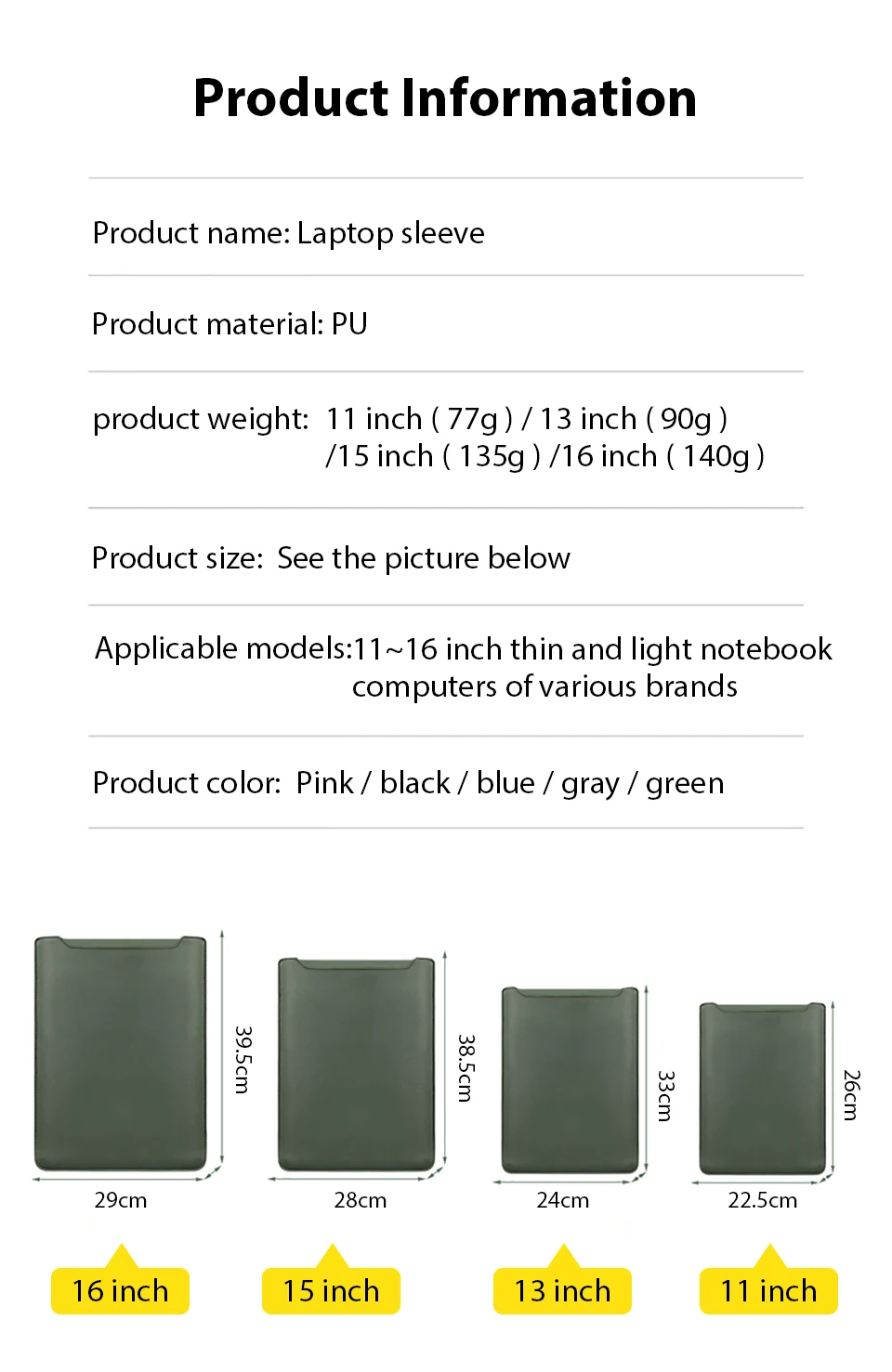 The electronic device on the product page is only used for displayProduct InformationProduct name: Laptop sleeve