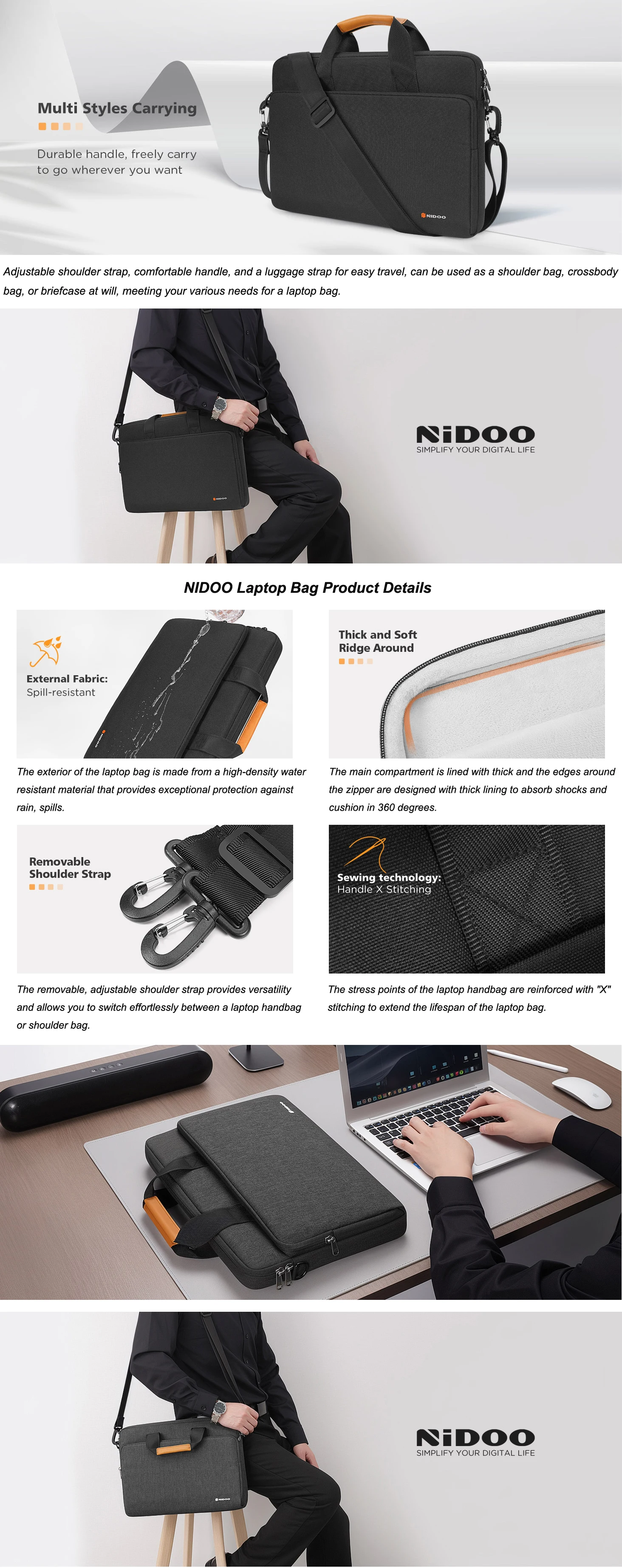 NIDOO 맥북 프로 에어 13.3 서류 가방 컴퓨터 숄더백 방수 노트북 커버 휴대용 가방 14 15.6 17.3 인치
