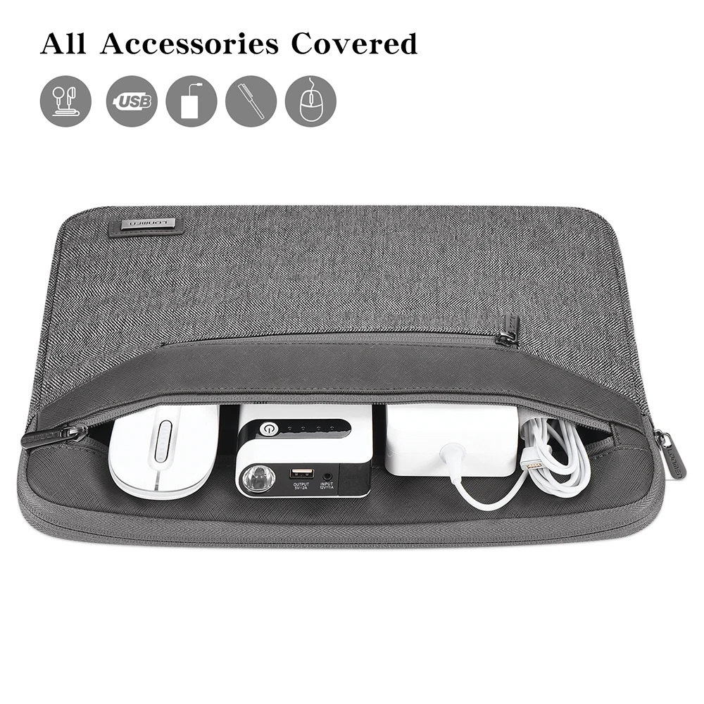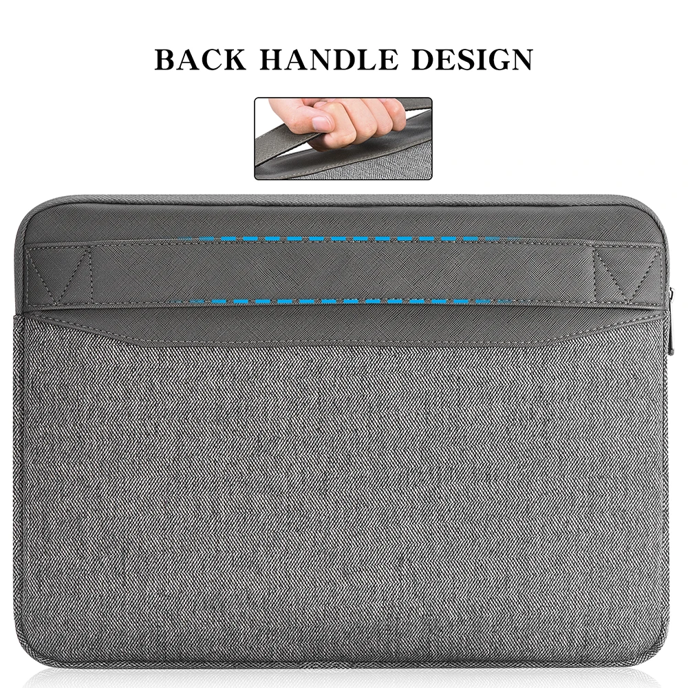 노트북 슬리브 방수 폴리에스터 가죽으로 제작되어 물과 증기를 효과적으로 차단합니다. 튀는 물에 노트북과 액세서리를 적시는 것에 대해 걱정하지 마십시오. 그리고 비오는 날 만나도 안전하게 케이스 가지고 다니세요.