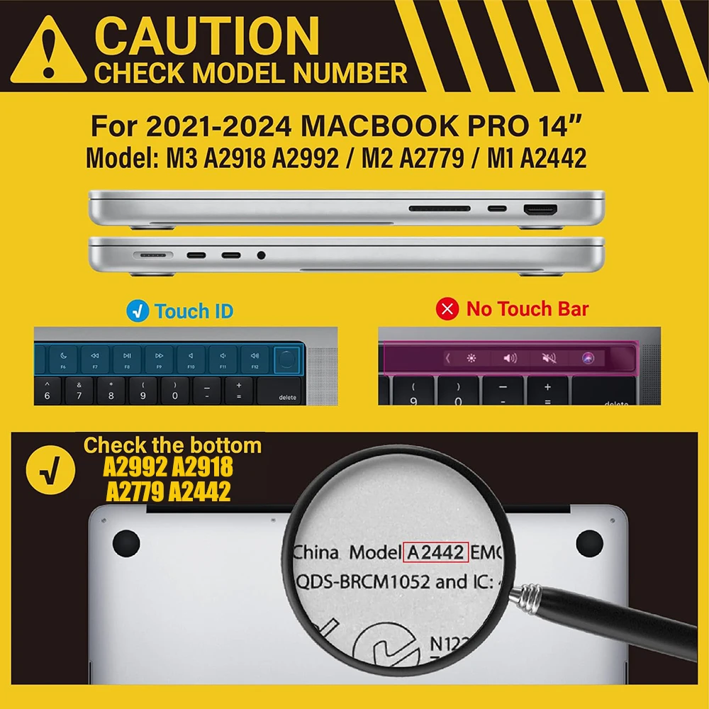 2024-2021 년에 출시된 MacBook Pro 14 "모델 M3 A2918 A2992 M2 A2779 및 M1 A2442 전용으로 설계되었습니다.