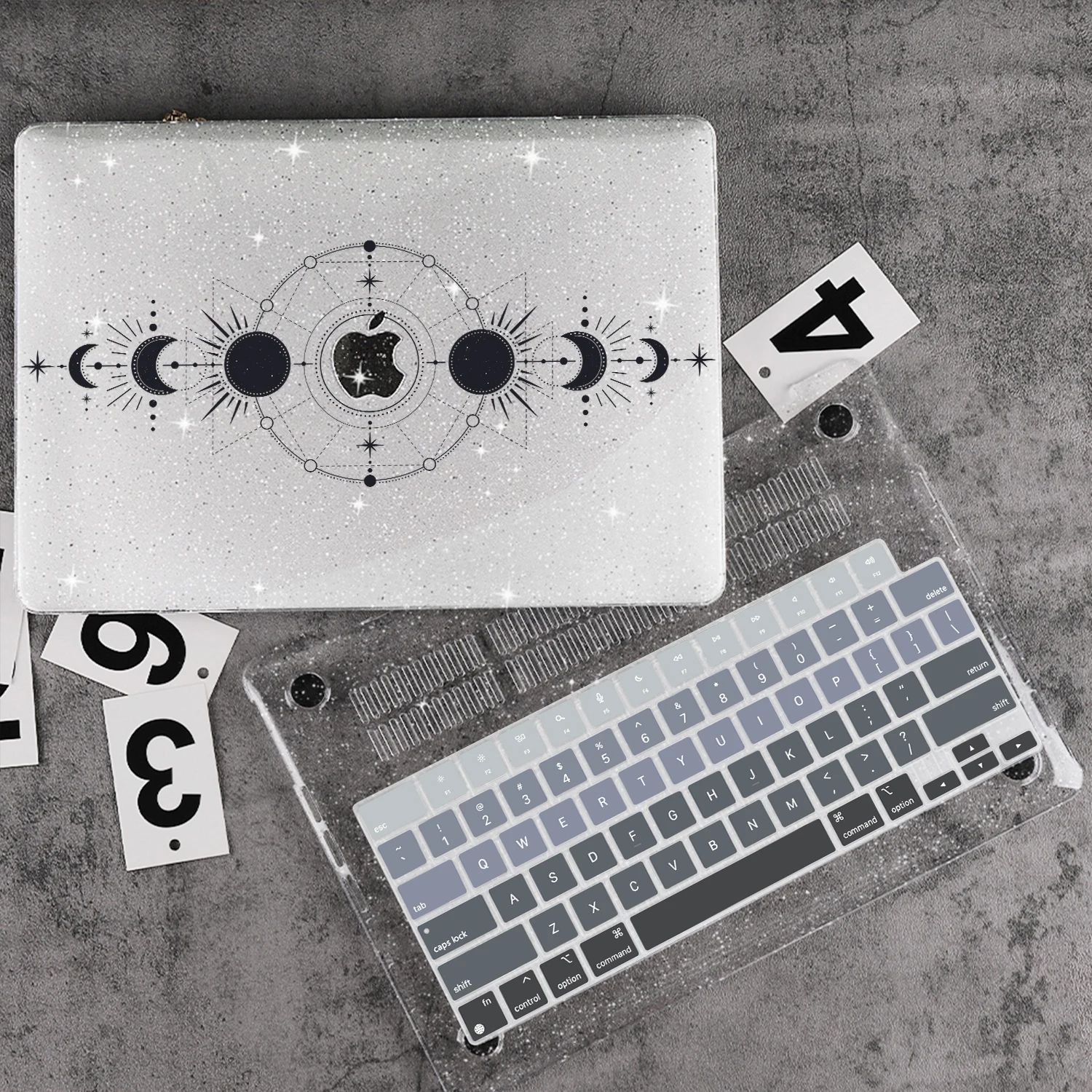1.세련된 디자인, 노트북 장식 및 보호. NO CUT OUT 디자인, 사과 로고가 노트북이 켜져있을 때 희미한 빛을 통해 빛납니다.