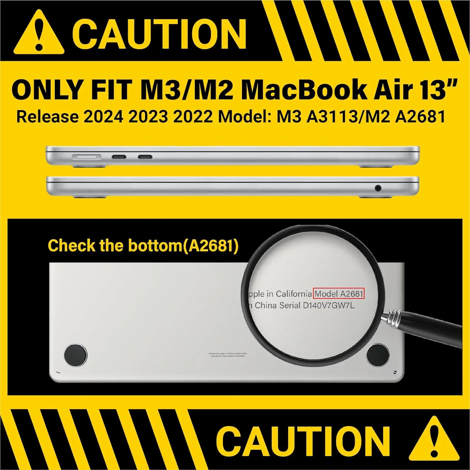 모델 확인: 이 케이스는 터치 ID가있는 2024 2023 2022 MacBook Air 13 인치, 최신 모델: M3 A3113 / M2 A2681 용으로 특별히 설계되었습니다.