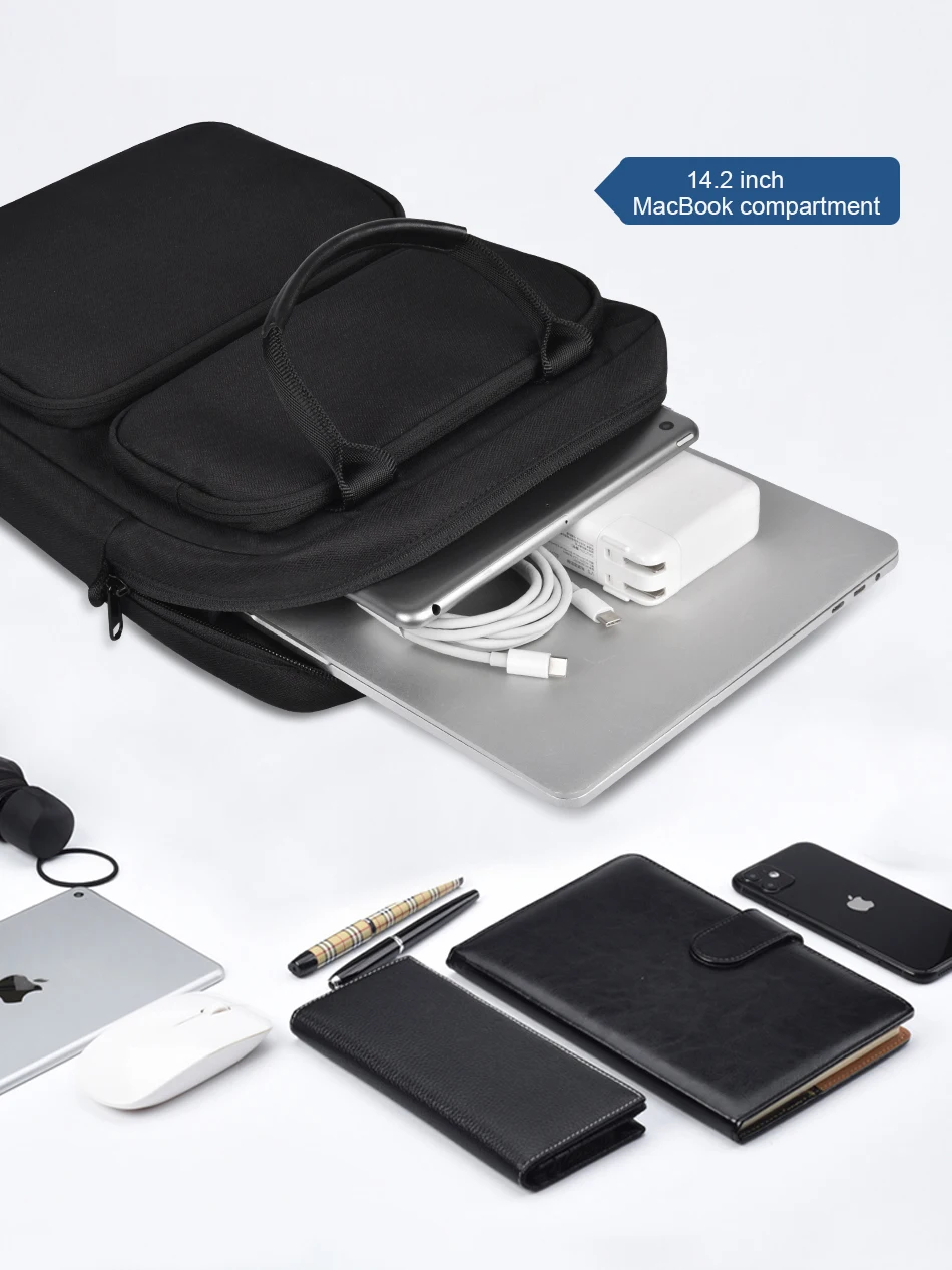 하이라이트:1. 코너 특허 디자인 보호합니다 노트북 융기 및 방울을 잠재적 사고.2.3 구획 지퍼 디자인 주최자 당신의 액세서리.3. 내구성 YKK 지퍼.4. 전면 포켓 탄성 키 체인.5. 개별 노트북 구획 만든 모피 안감.6.1 년 보증.