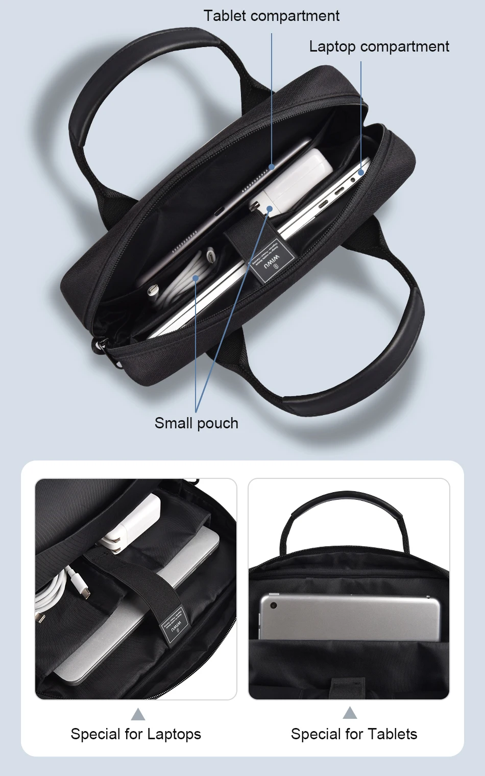 WIWU 12.9 인치 방수 어깨 가방 맥북 프로 13 공기 13 14.2 2020 운반 케이스 iPad 프로 12.9 11 10