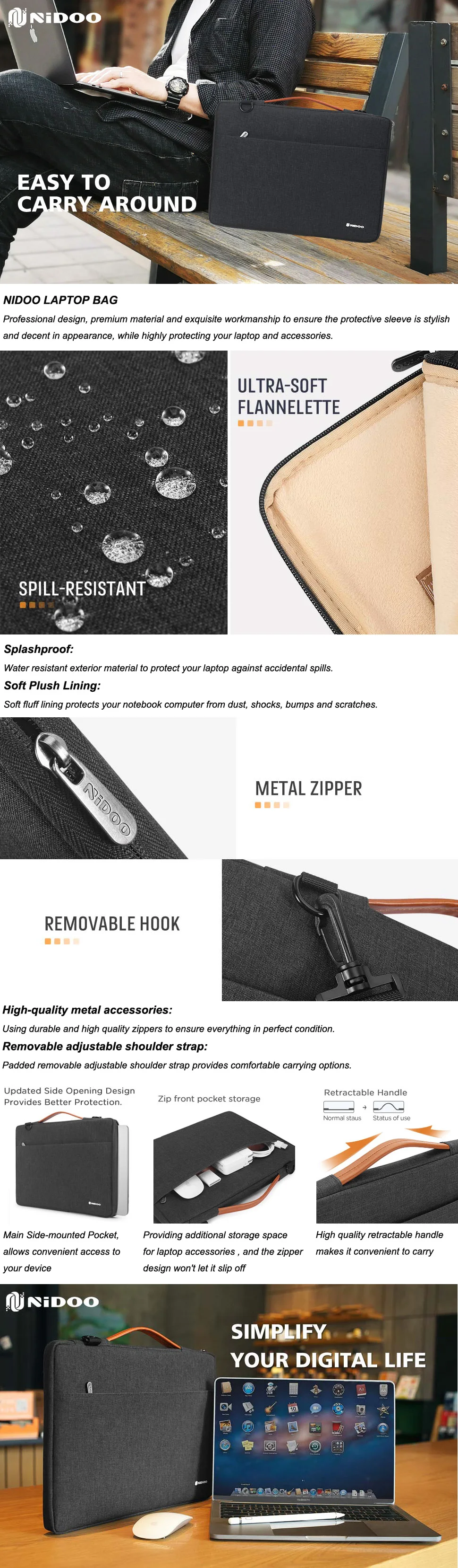 NIDOO 노트북 가방 슬리브 10 13 14 15.6 인치 방수 노트북 케이스 Macbook Air Pro 컴퓨터 숄더 핸드백 서