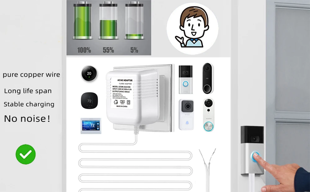 지속적으로 전원 공급 장치 초인종/온도 조절기 및 배터리 부족 제거에 대한 걱정없이 시간을 절약하고 노력을 절약 할 수 있습니다.