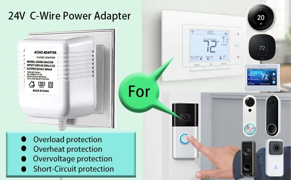 【널리 적용】 대부분의 초인종 (네스트, 알로, 링, 암크레스트, , 유피, 레모, 스카이벨, 심플 세이프), 온도 조절기 (허니웰, 네스트, 에코비, 와이즈, 에머슨, 센시) 와 호환 가능 및 작동을 위해 24 볼트 전력을 필요로하는 기타 장치;