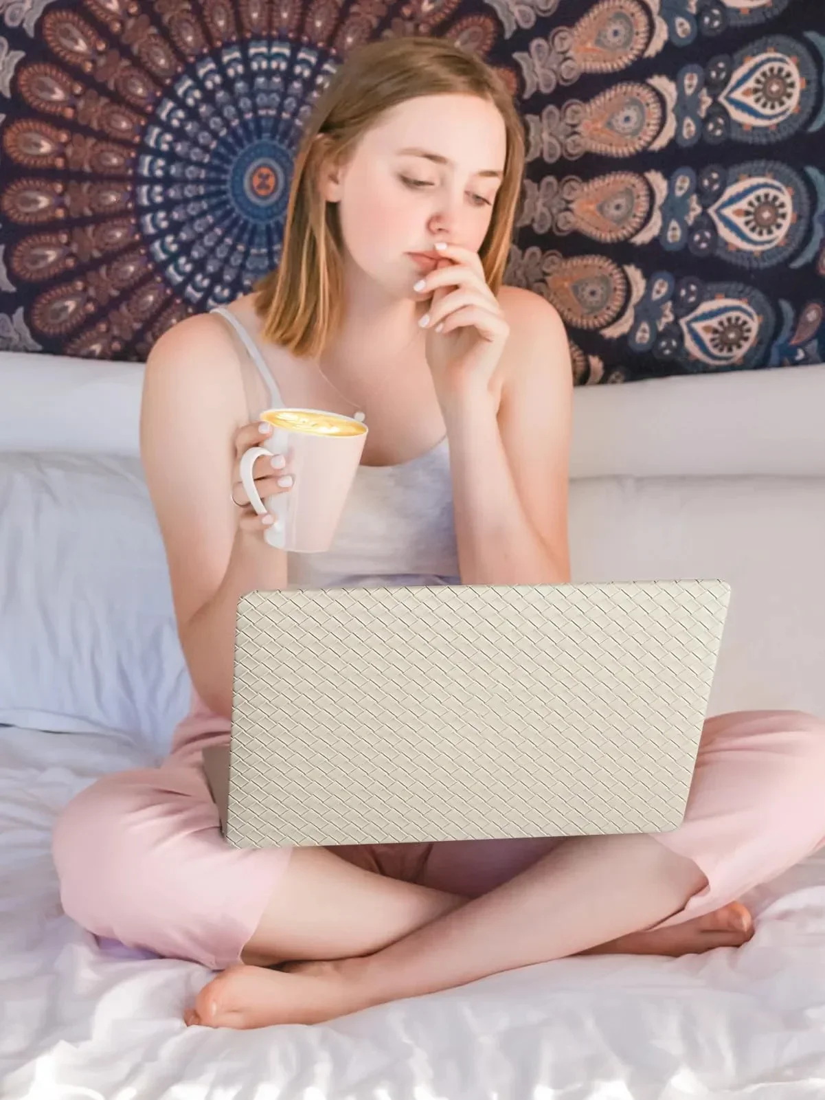?STYLISH DESIGNS:Adopt unique process technology.Elegant and simple woven fabric and tartan PVC leather design.You can choose from various fashionable colors for your laptop.The surface is smooth and soft.Multi colors like beige,pink,green,brown,grey,black are available.