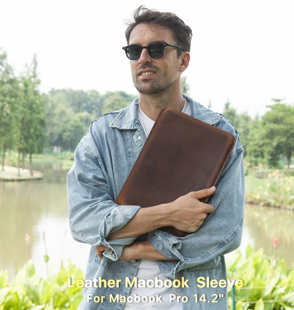 맥북 프로 14 맥북 에어 13 m1 레트로 커버 프로 13 15 인치 액세서리에 대한 고급 가죽 노트북 슬리브 케이스