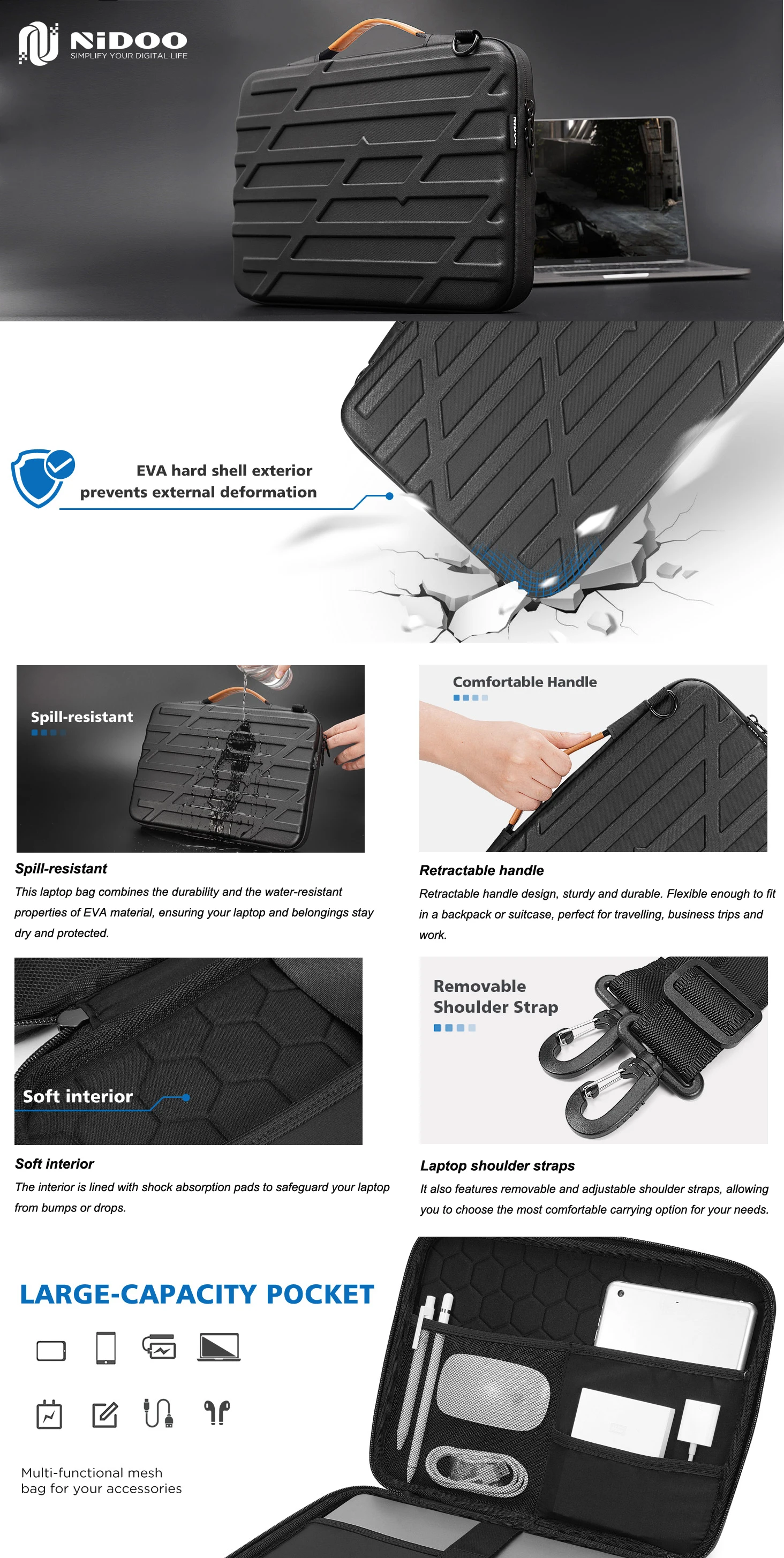 NIDOO 컴퓨터 휴대용 케이스 하드 쉘 보호 노트북 가방 13 14 노트북용 방수 충격 방지 컴퓨터 가방 블랙